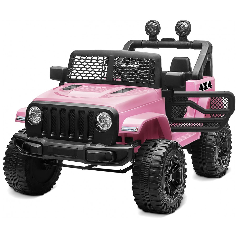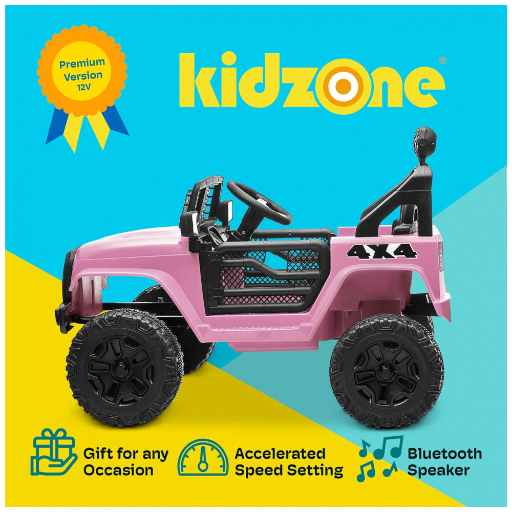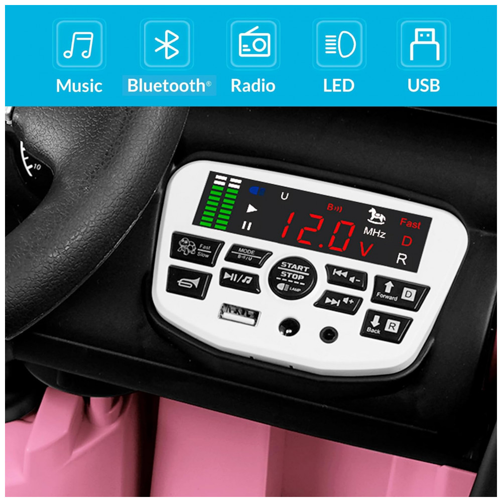 Carro Elétrico Infantil a Bateria 12V com 2 Assentos Luzes LED MP3 e Controle Remoto Kidzone Rosa