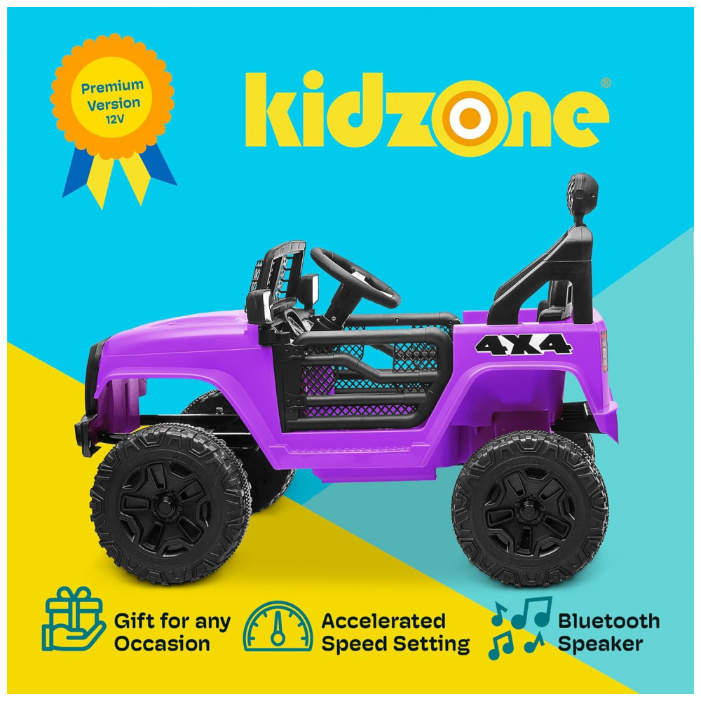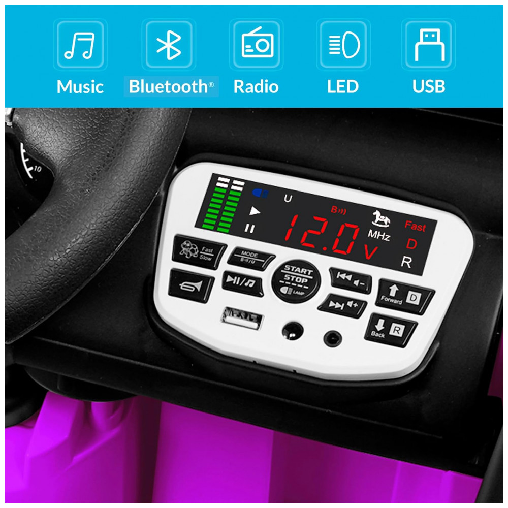 Carro Elétrico Infantil a Bateria 12V com 2 Assentos Luzes LED MP3 e Controle Remoto Kidzone Roxo