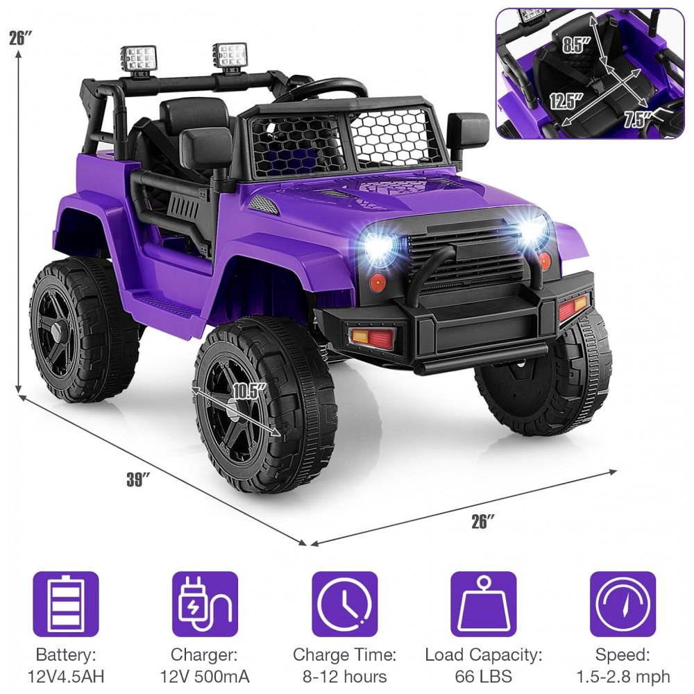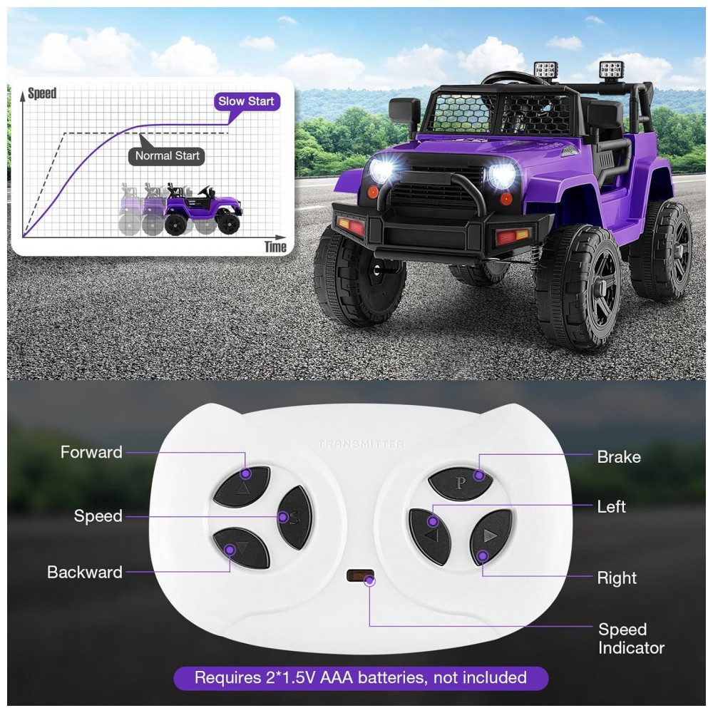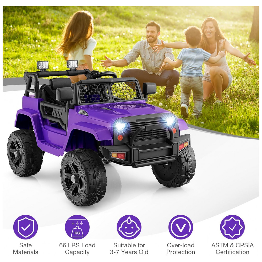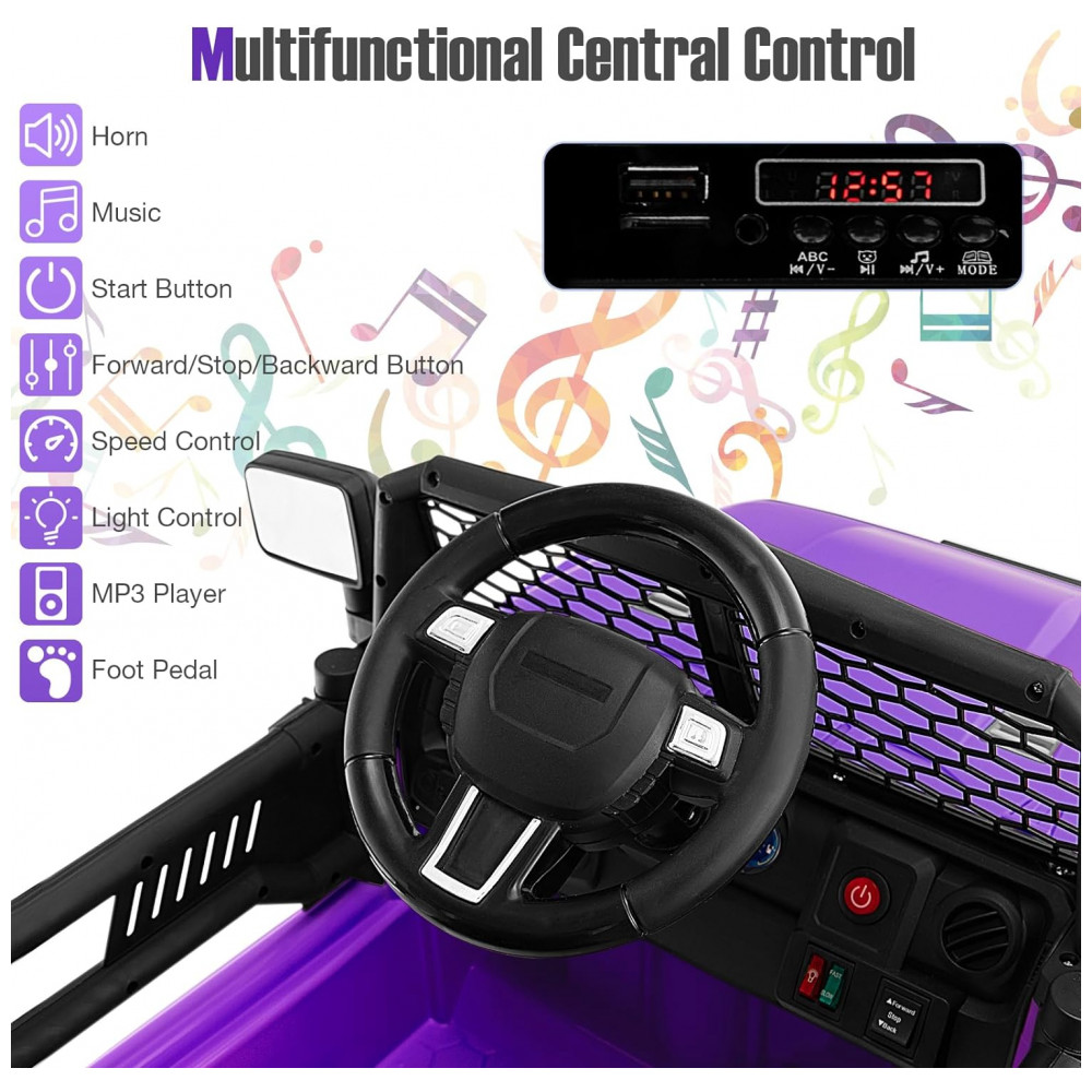 Carro Elétrico Infantil a Bateria 12V com Luzes LED Buzina. MP3 e Suspensão de Mola HONEY JOY Roxo