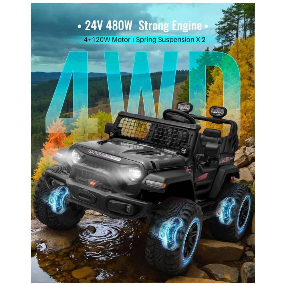 Carro Elétrico Infantil a Bateria 24V 2 Assentos com 3 Velocidades Motor Potente 480W BLITZSHARK SRK 0935 MAX Preto