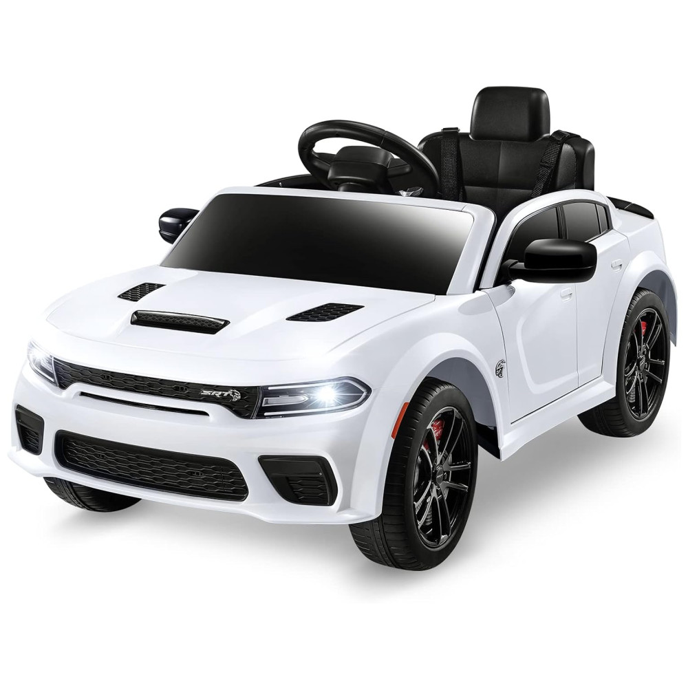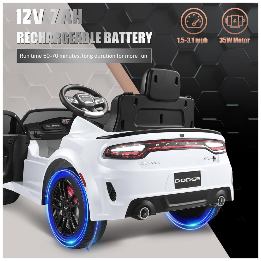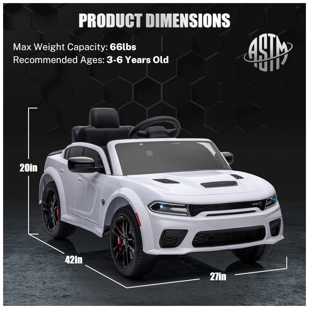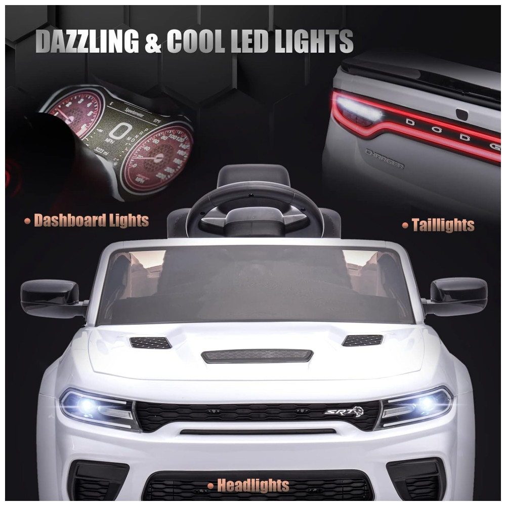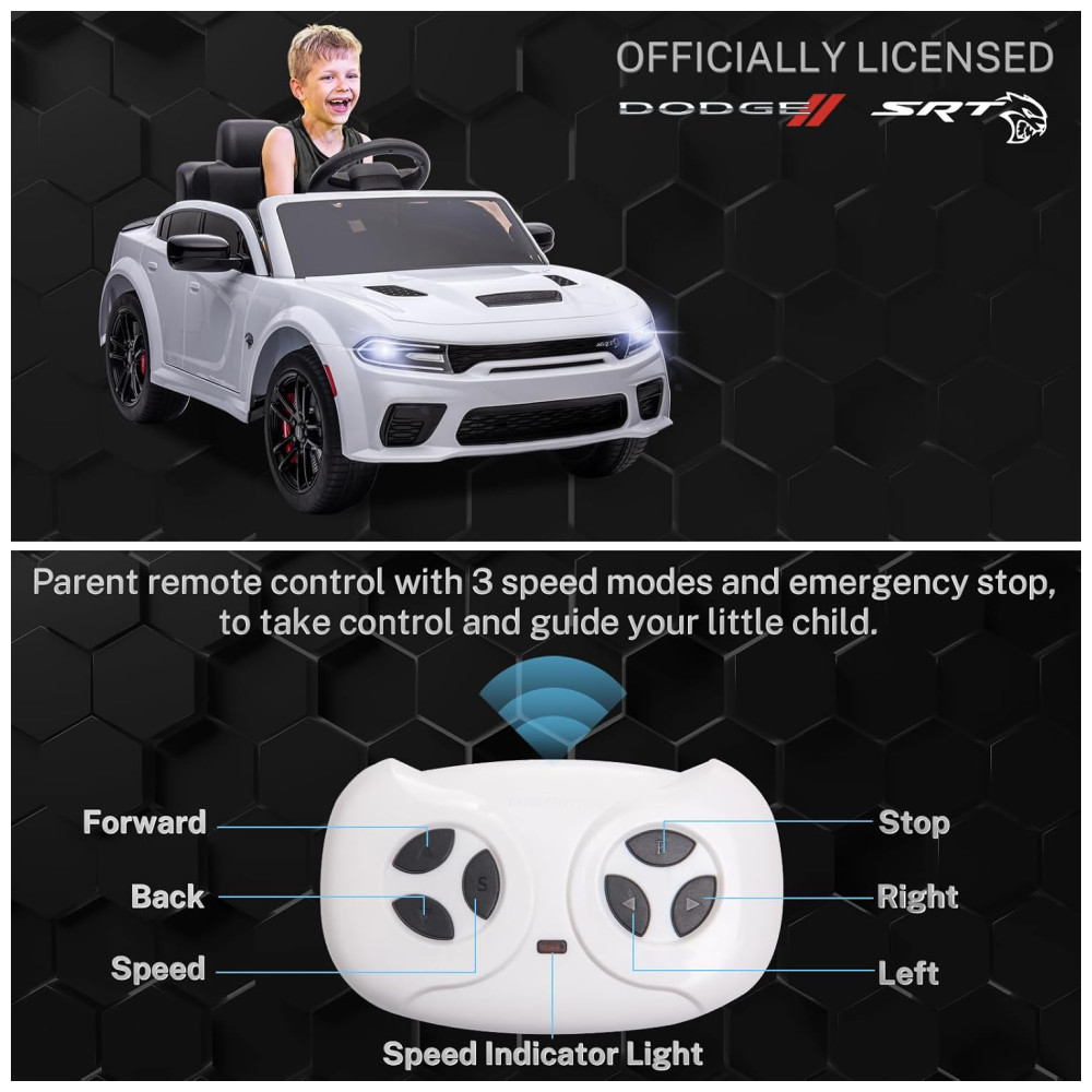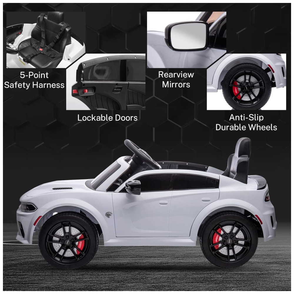 Carro Elétrico Infantil a Bateria com Controle Remoto 3 Velocidades Luzes LED e Música 12V ENYOPRO Dodge Charger licenciado SRT Hellcat Branco