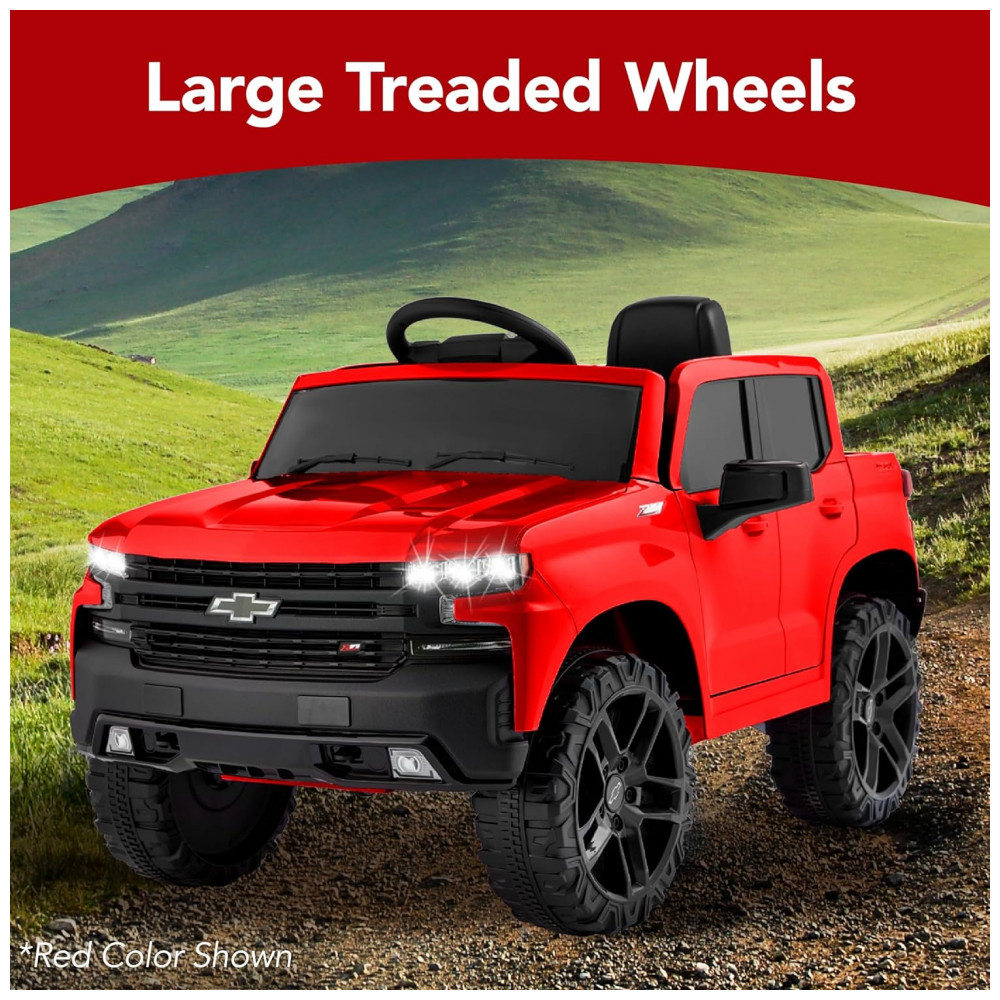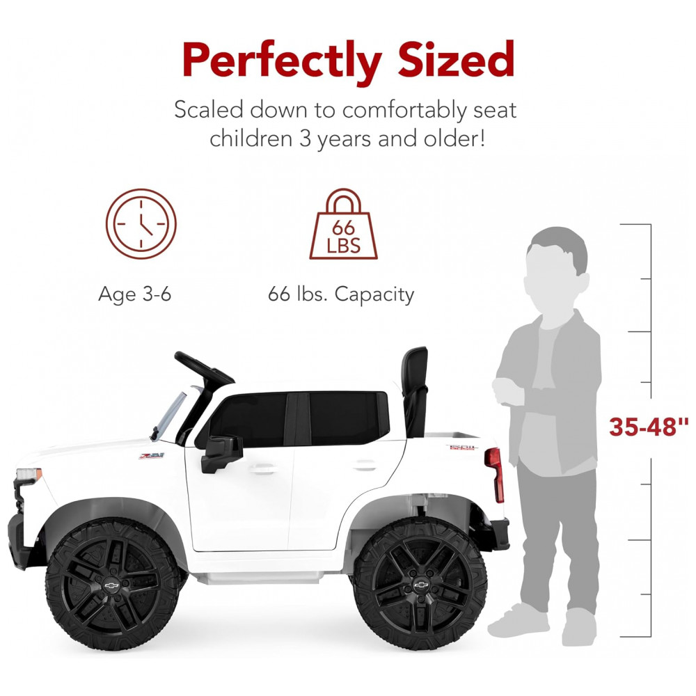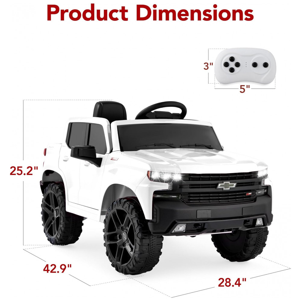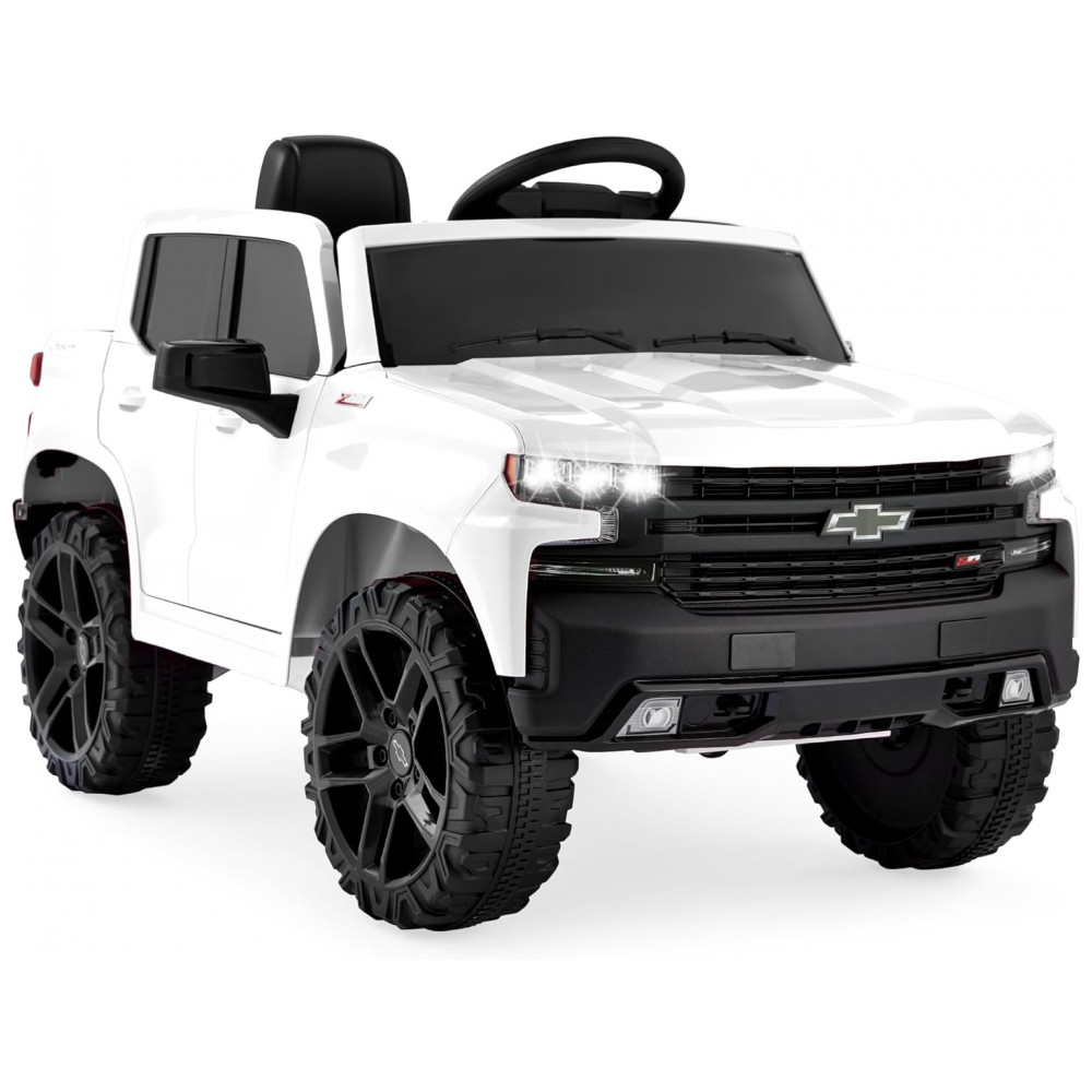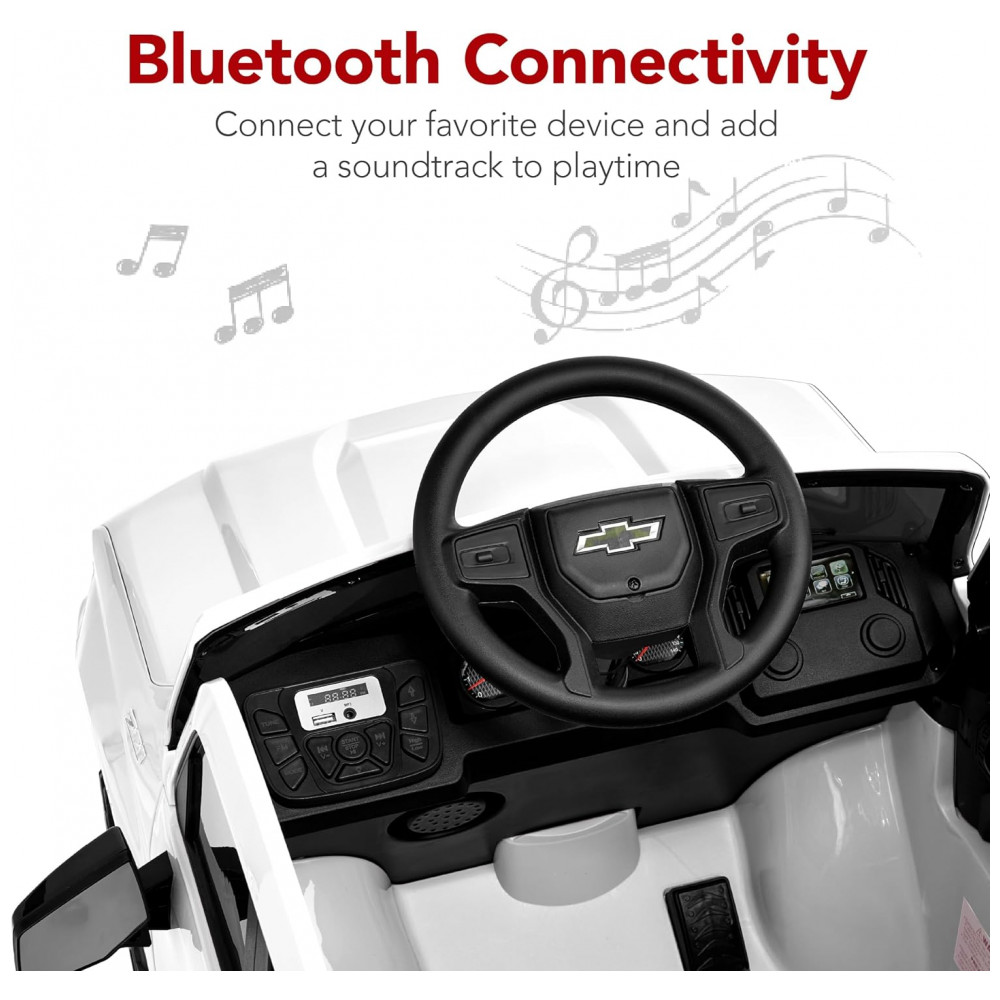 Carro Elétrico Infantil a Bateria com Controle Remoto Armazenamento de Caçamba Alto Falante Bluetooth e Luzes LED 12V Best Choice Products Chevrolet Silverado Branco