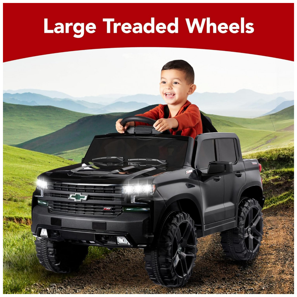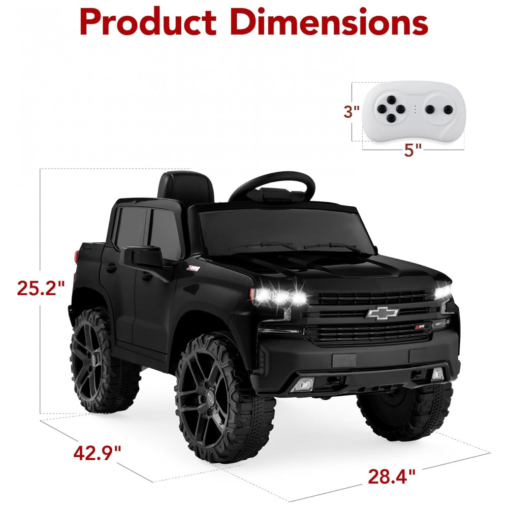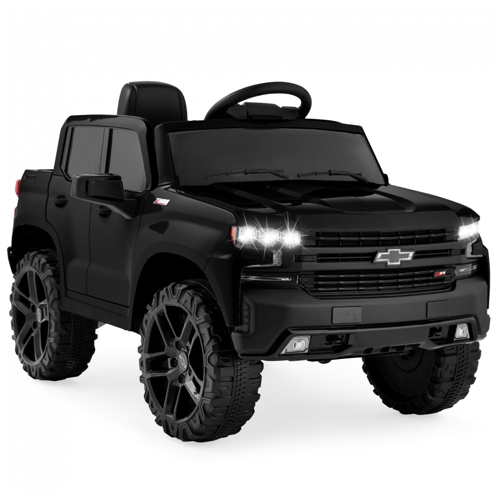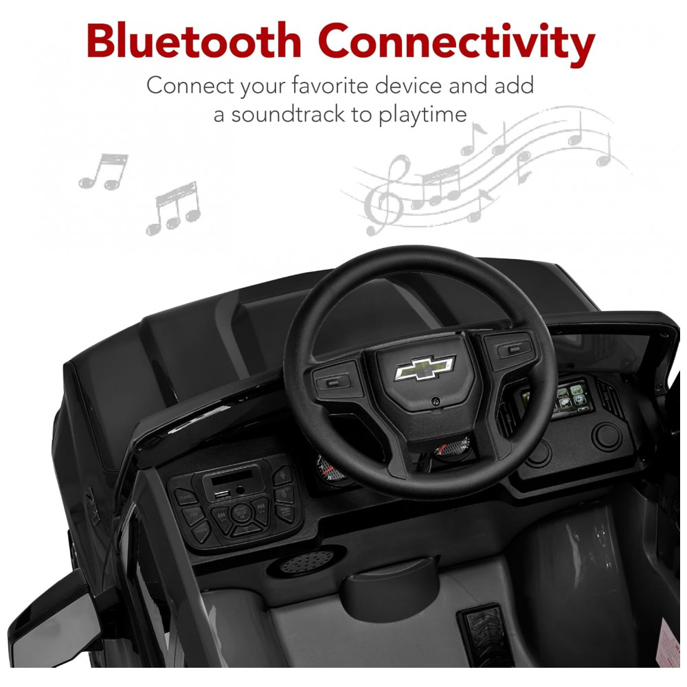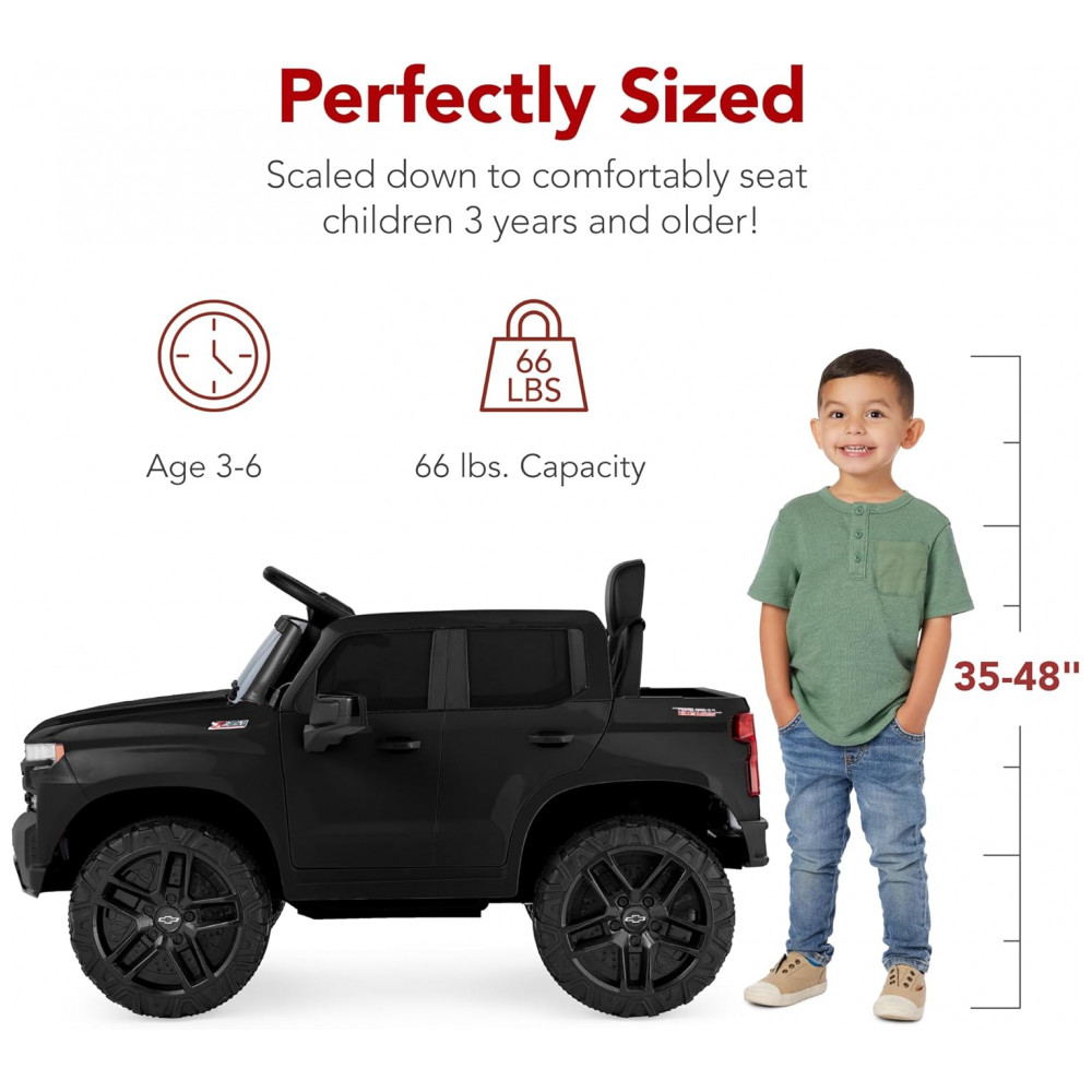 Carro Elétrico Infantil a Bateria com Controle Remoto Armazenamento de Caçamba Alto Falante Bluetooth e Luzes LED 12V Best Choice Products Chevrolet Silverado Preto
