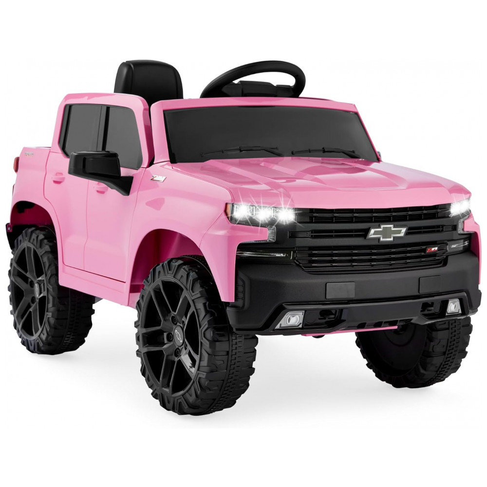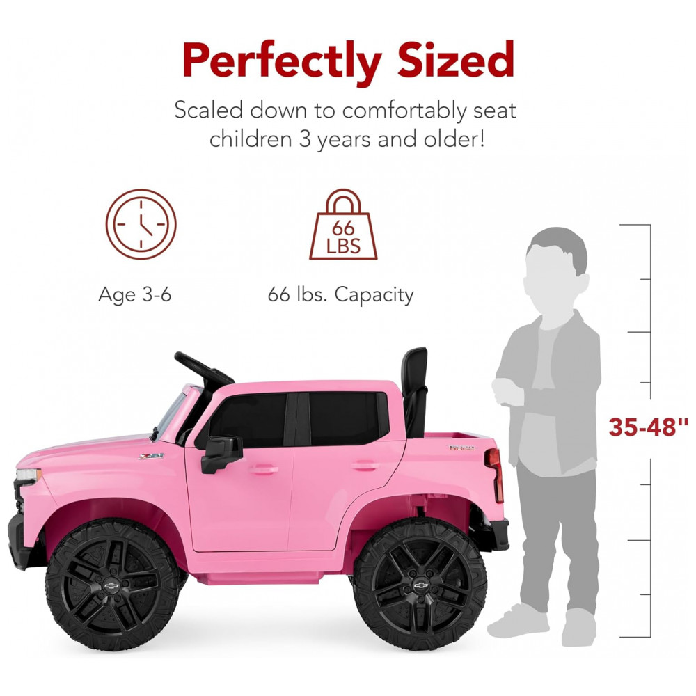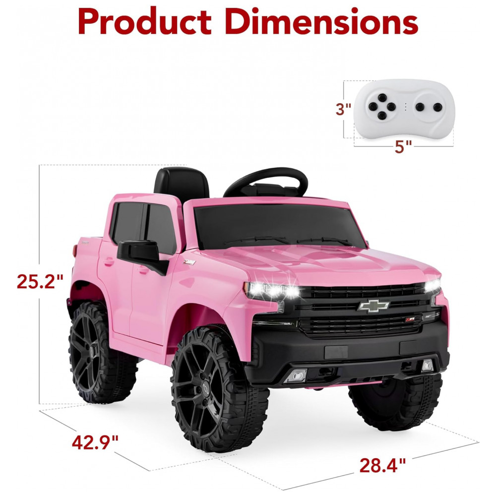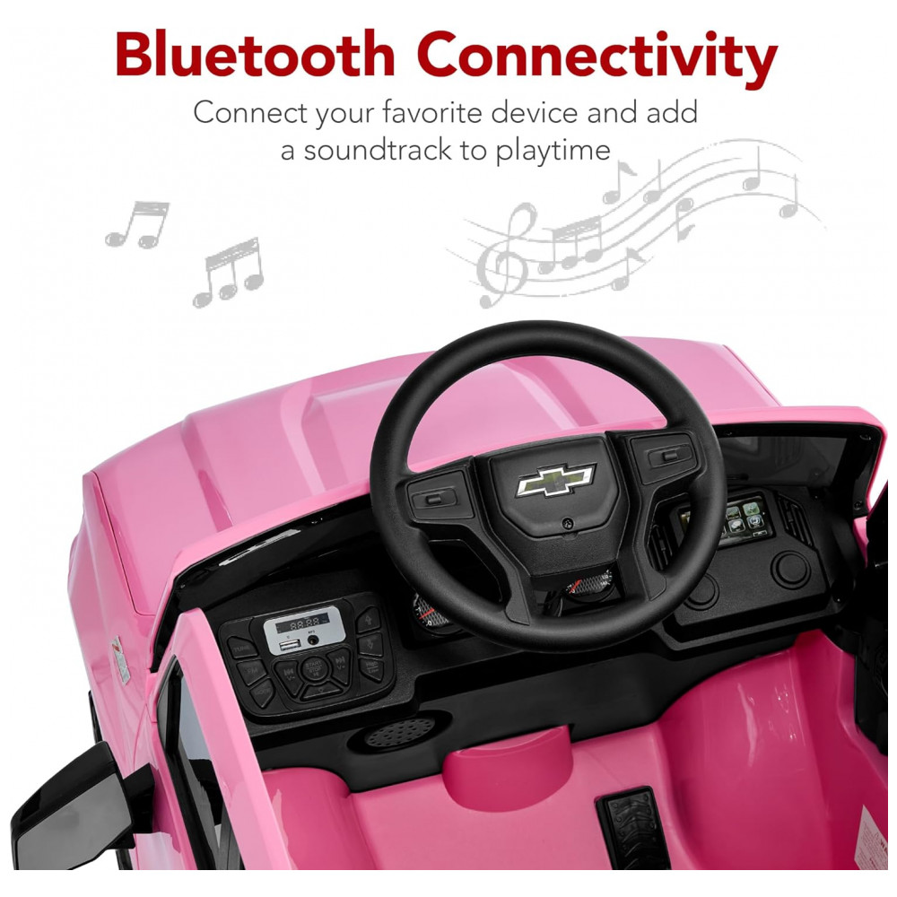 Carro Elétrico Infantil a Bateria com Controle Remoto Armazenamento de Caçamba Alto Falante Bluetooth e Luzes LED 12V Best Choice Products Chevrolet Silverado Rosa