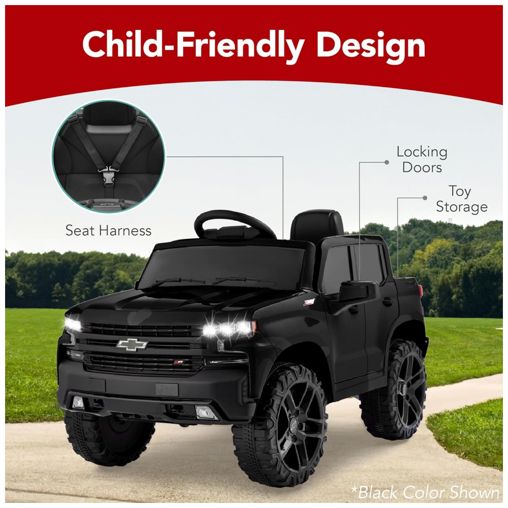 O design é preciso para recriar com perfeição o caminhão original, reduzido para proporcionar um passeio divertido. Possui um volante alimentado por bateria, arnês de assento com portas trancadas, caçamba de caminhão para fácil armazenamento de brinquedos e faróis funcionais para interação. Além disso, conta com conectividade Bluetooth, permitindo que as crianças conectem seus dispositivos de mídia e curtam seu passeio com suas músicas favoritas. As dimensões gerais são de 108,97 cm x 72,14 cm x 64,01 cm e a capacidade de peso é de 29,93 quilos.