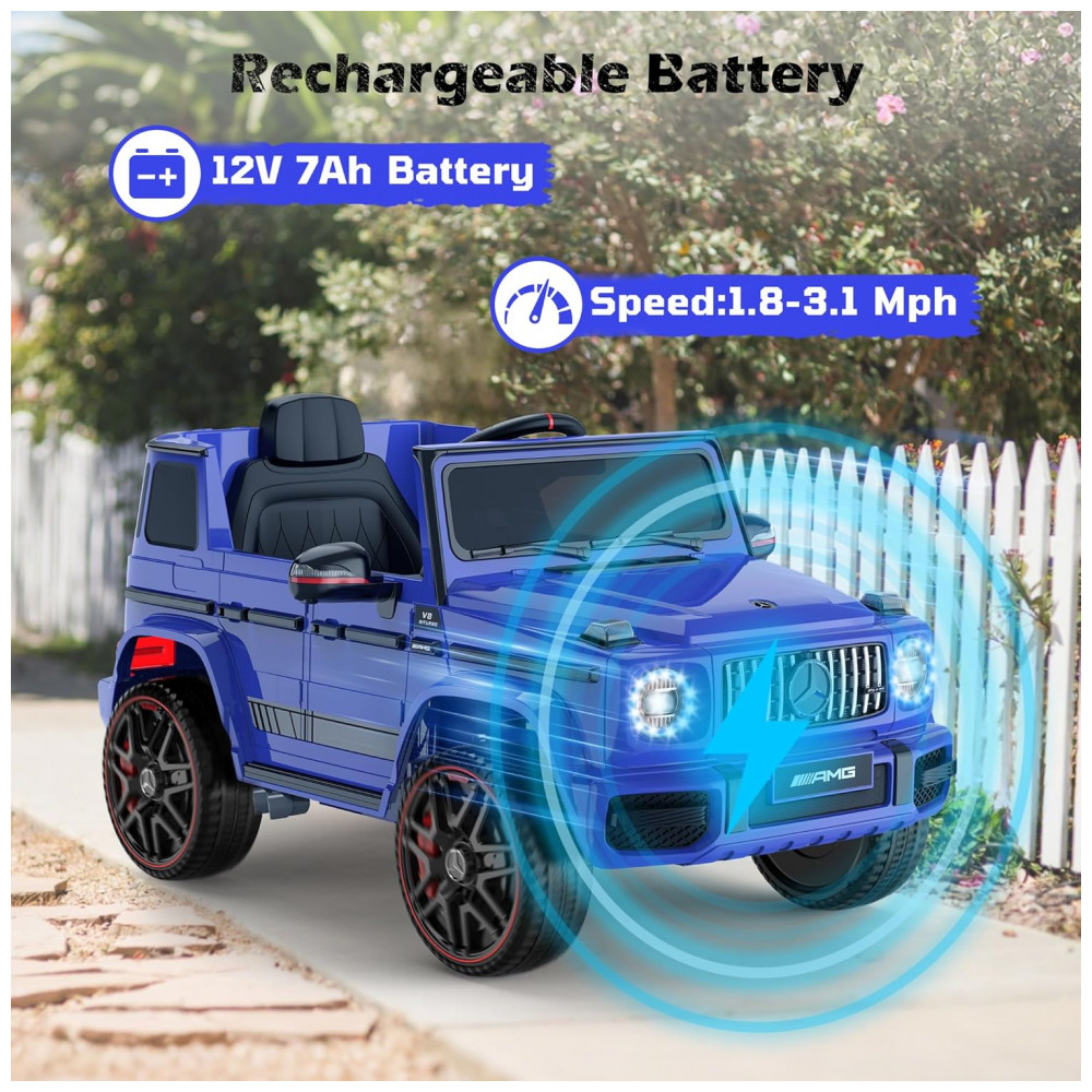 Carro Elétrico Infantil a Bateria com Controle Remoto Farol LED Reprodutor de Música e Buzina 12V ANPABO Mercedes-Benz G63 Azul