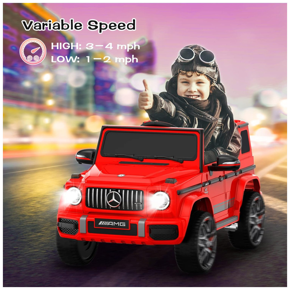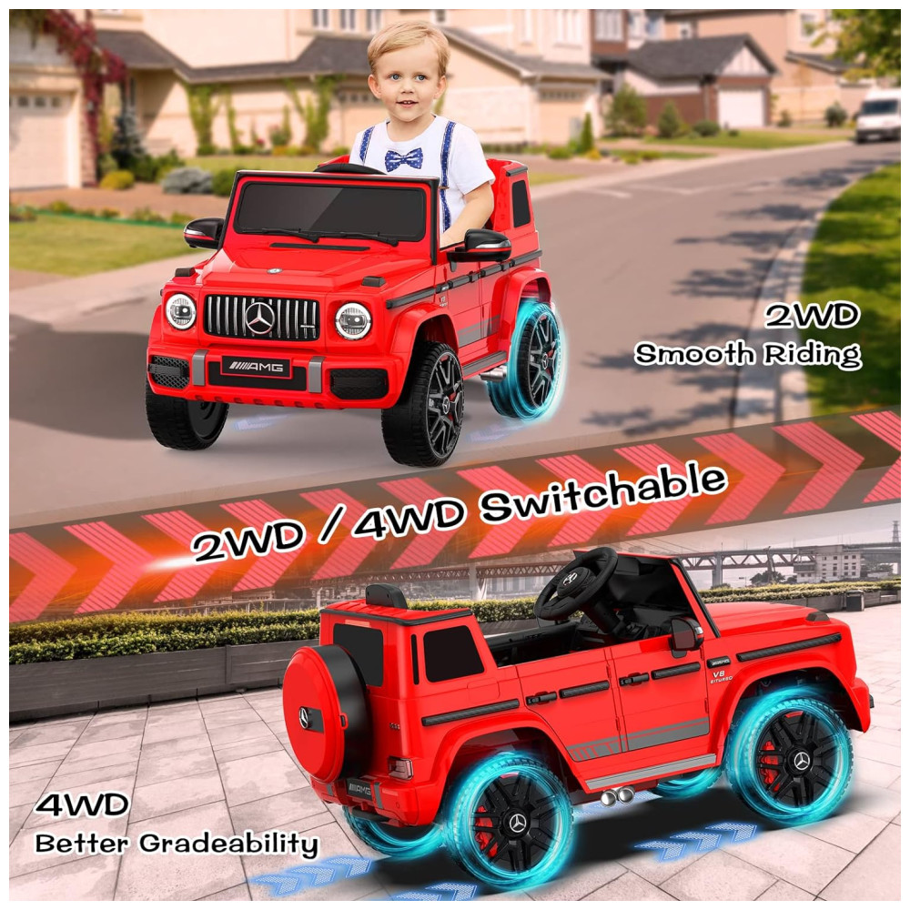 Carro Elétrico Infantil a Bateria com Controle Remoto Farol LED Reprodutor de Música e Tração nas 4 Rodas com Opção de 2 Rodas 24V ANPABO Mercedes-Benz G63 Vermelho