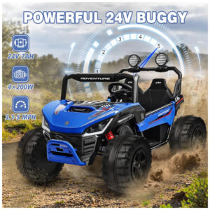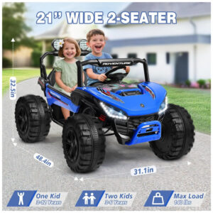 O carro elétrico infantil ANPABO proporciona potência, segurança e diversão para crianças de 3 a 12 anos, com quatro motores de 200W, 24V de potência, suspensão independente com quatro molas e pneus antiderrapantes para todos os tipos de terreno. O modelo possui dois assentos individuais com cintos de segurança ajustáveis, estrutura reforçada em metal, espaço interno ampliado e controle remoto para operação dos pais com três velocidades e parada de emergência. Destaque para os efeitos Rainbow LED, luzes frontais e traseiras, sistema de som integrado, conexão Bluetooth para músicas e histórias, além de compartimento de armazenamento para brinquedos. Capacidade máxima de 63 kg, fácil de montar, e ideal para presente de aniversário ou Natal.