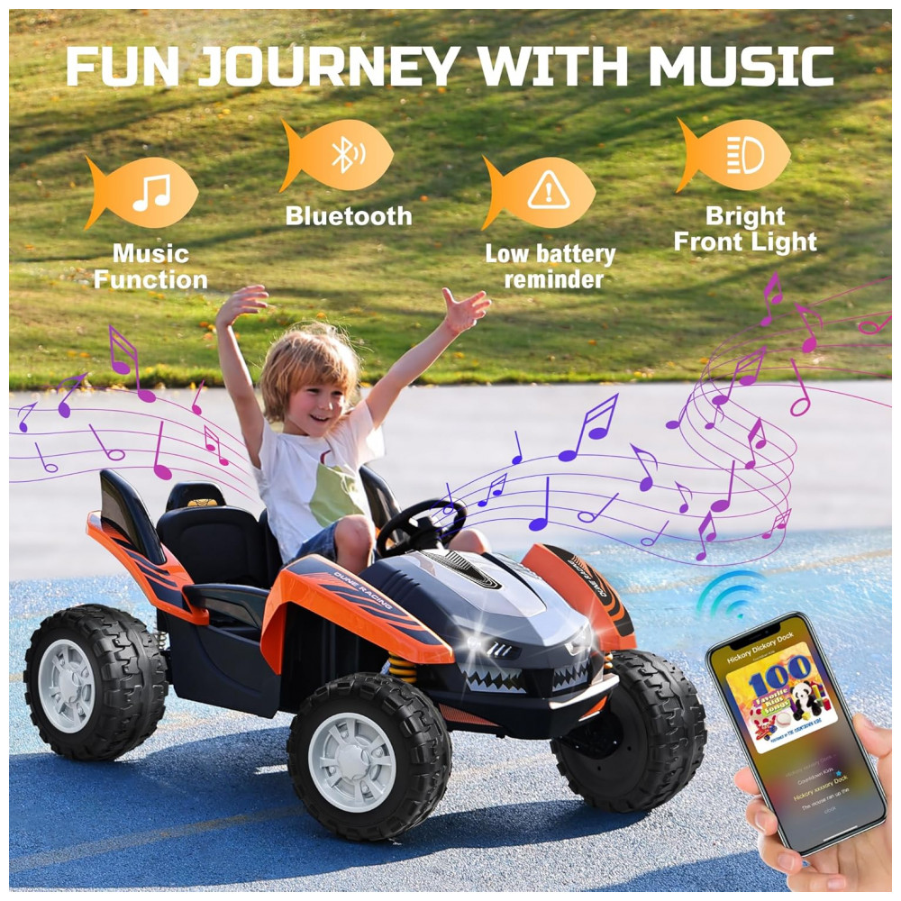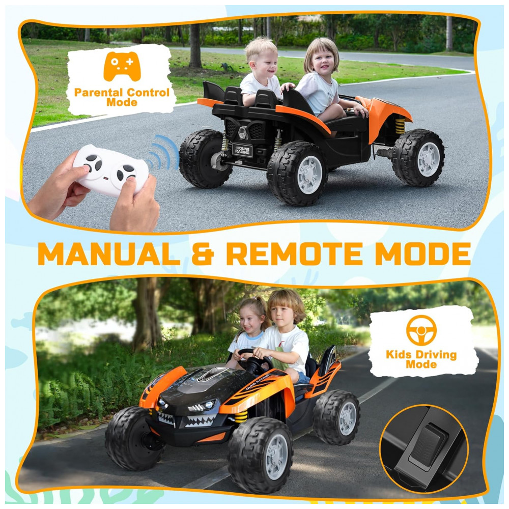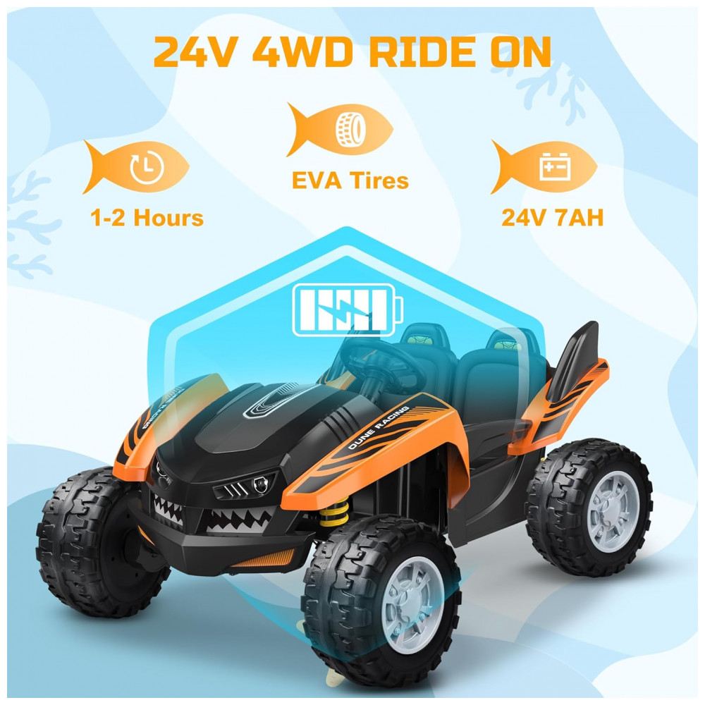 Carro Elétrico Infantil ANPABO Laranja 24V 2 Lugares 4 Motores 200W Off-Road UTV Pneus EVA Suspensão Controle Bluetooth 5.1km/h