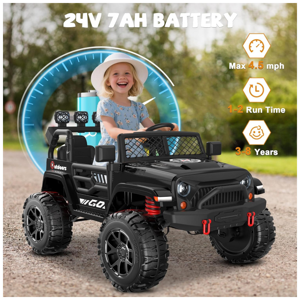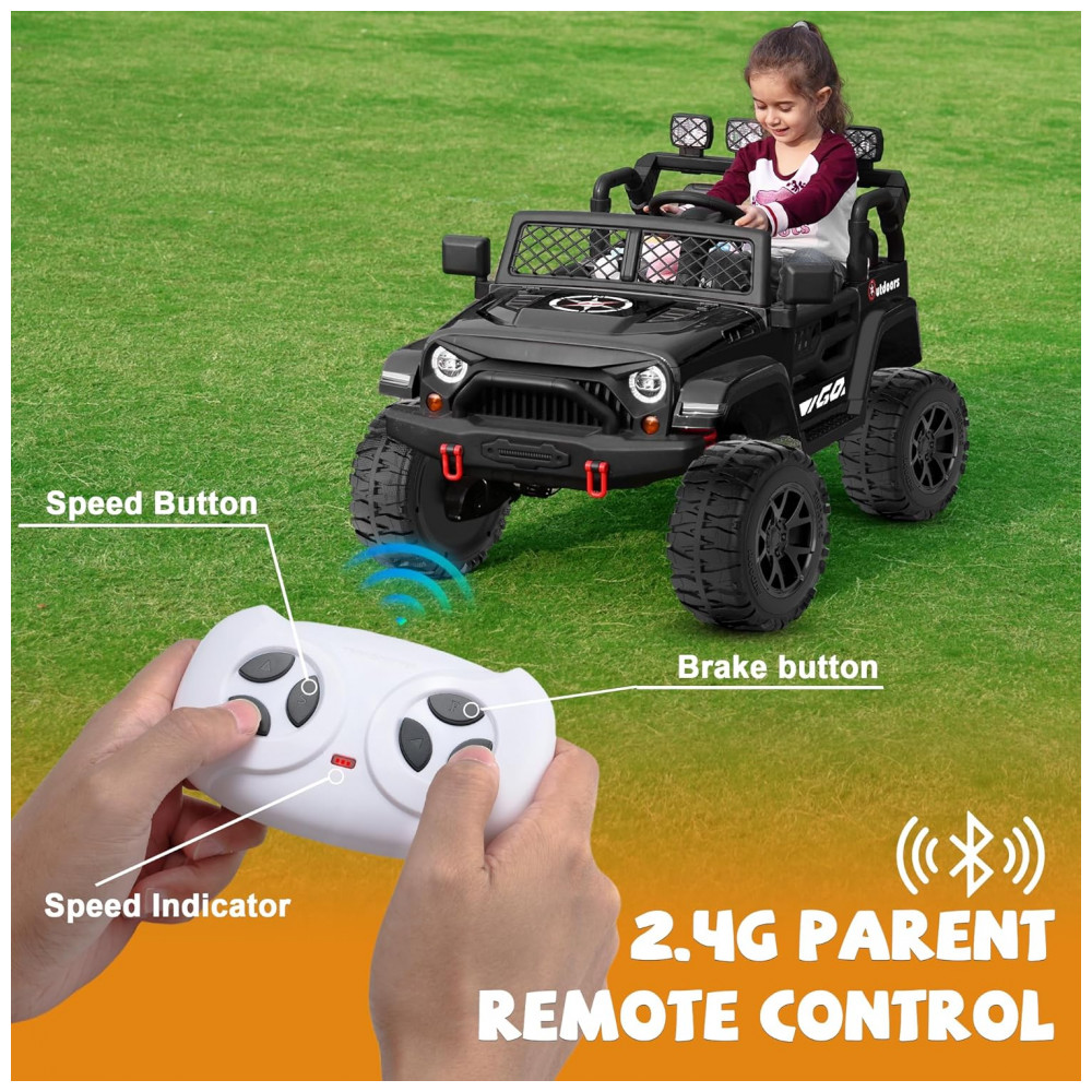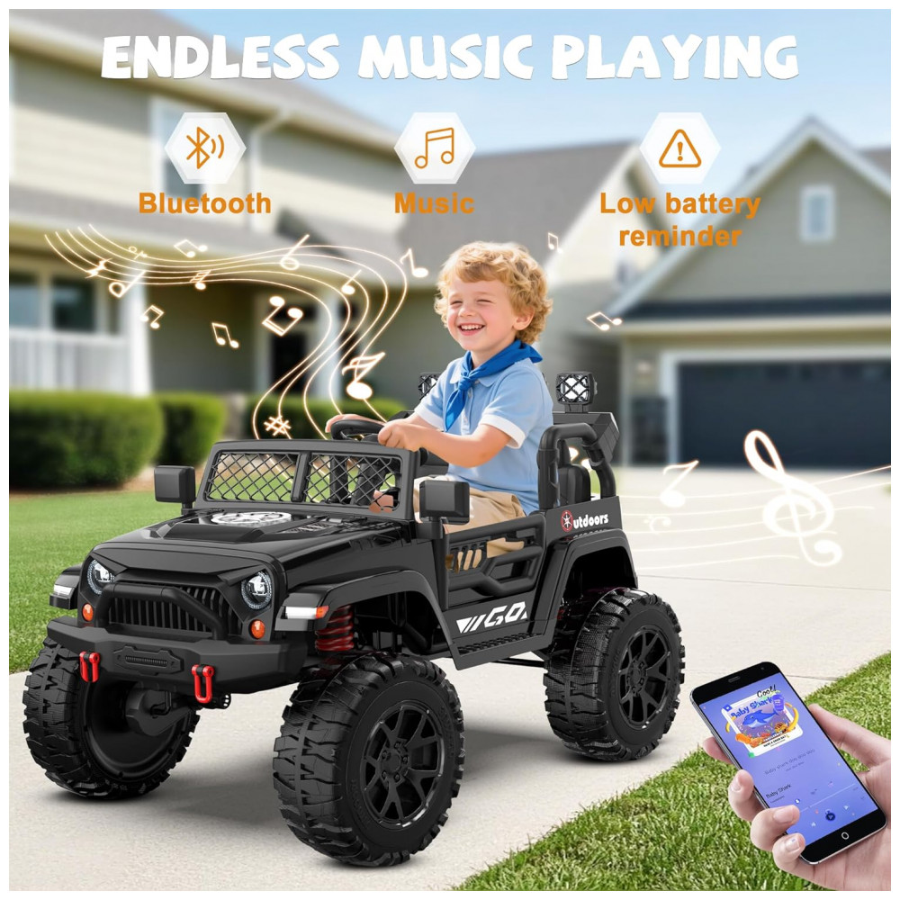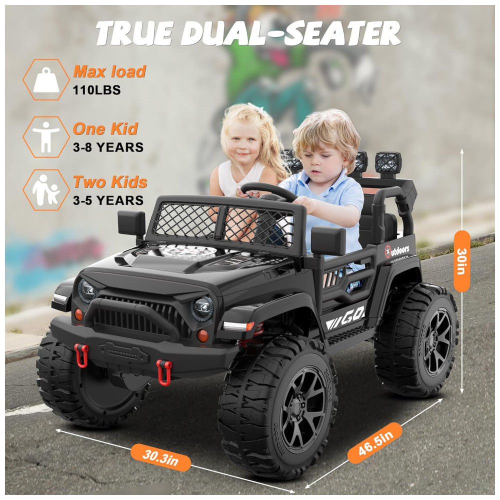 Carro Elétrico Infantil ANPABO Preto 24V 2 Lugares 4 Motores 200W Off-Road Pneus EVA Suspensão Controle Bluetooth 4WD/2WD LED