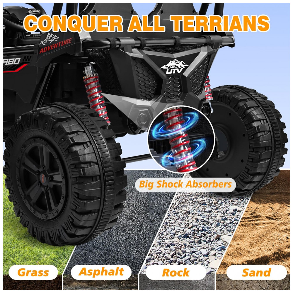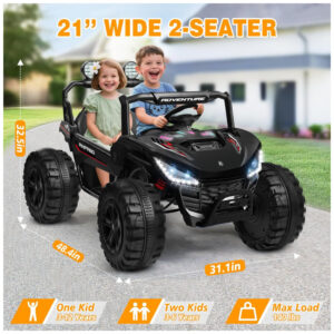Carro Elétrico Infantil ANPABO Preto 24V 2 Lugares 4 Motores 200W Suspensão Rainbow LED Controle Bluetooth 5.1km/h