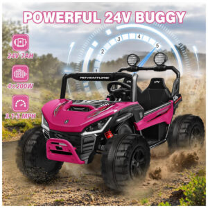 O carro elétrico infantil ANPABO proporciona potência, segurança e diversão para crianças de 3 a 12 anos, com quatro motores de 200W, 24V de potência, suspensão independente com quatro molas e pneus antiderrapantes para todos os tipos de terreno. O modelo possui dois assentos individuais com cintos de segurança ajustáveis, estrutura reforçada em metal, espaço interno ampliado e controle remoto para operação dos pais com três velocidades e parada de emergência. Destaque para os efeitos Rainbow LED, luzes frontais e traseiras, sistema de som integrado, conexão Bluetooth para músicas e histórias, além de compartimento de armazenamento para brinquedos. Capacidade máxima de 63 kg, fácil de montar, e ideal para presente de aniversário ou Natal.