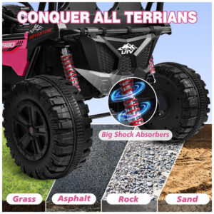 Carro Elétrico Infantil ANPABO Rosa 24V 2 Lugares 4 Motores 200W Suspensão Rainbow LED Controle Bluetooth 5.1km/h