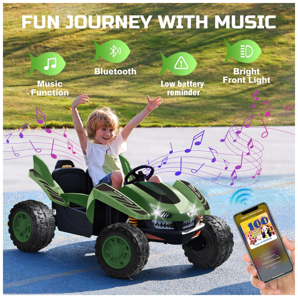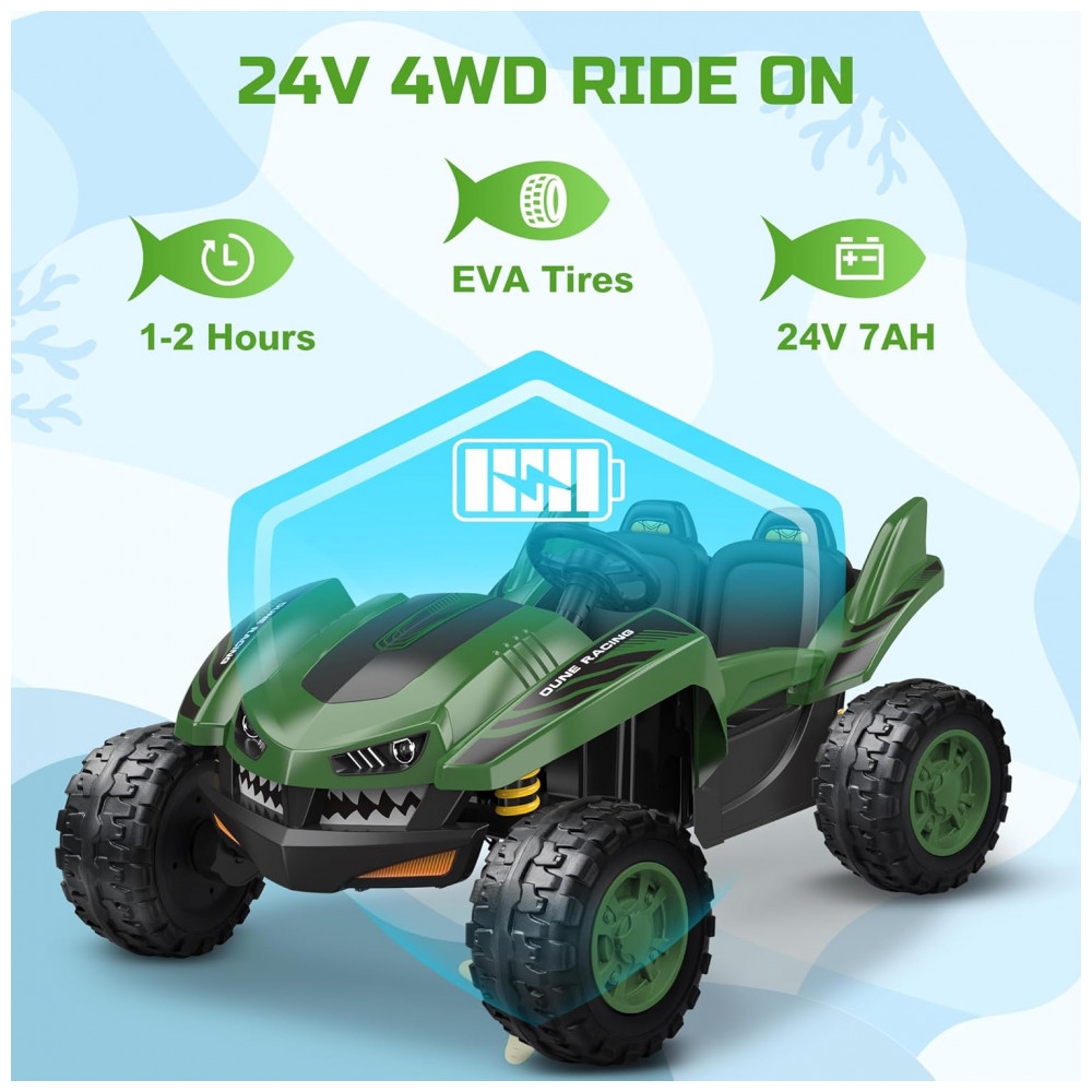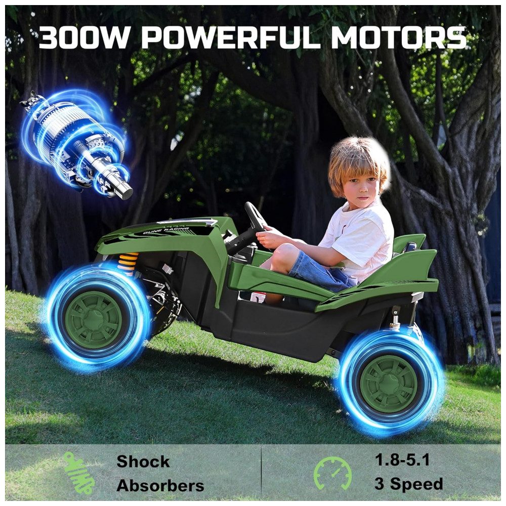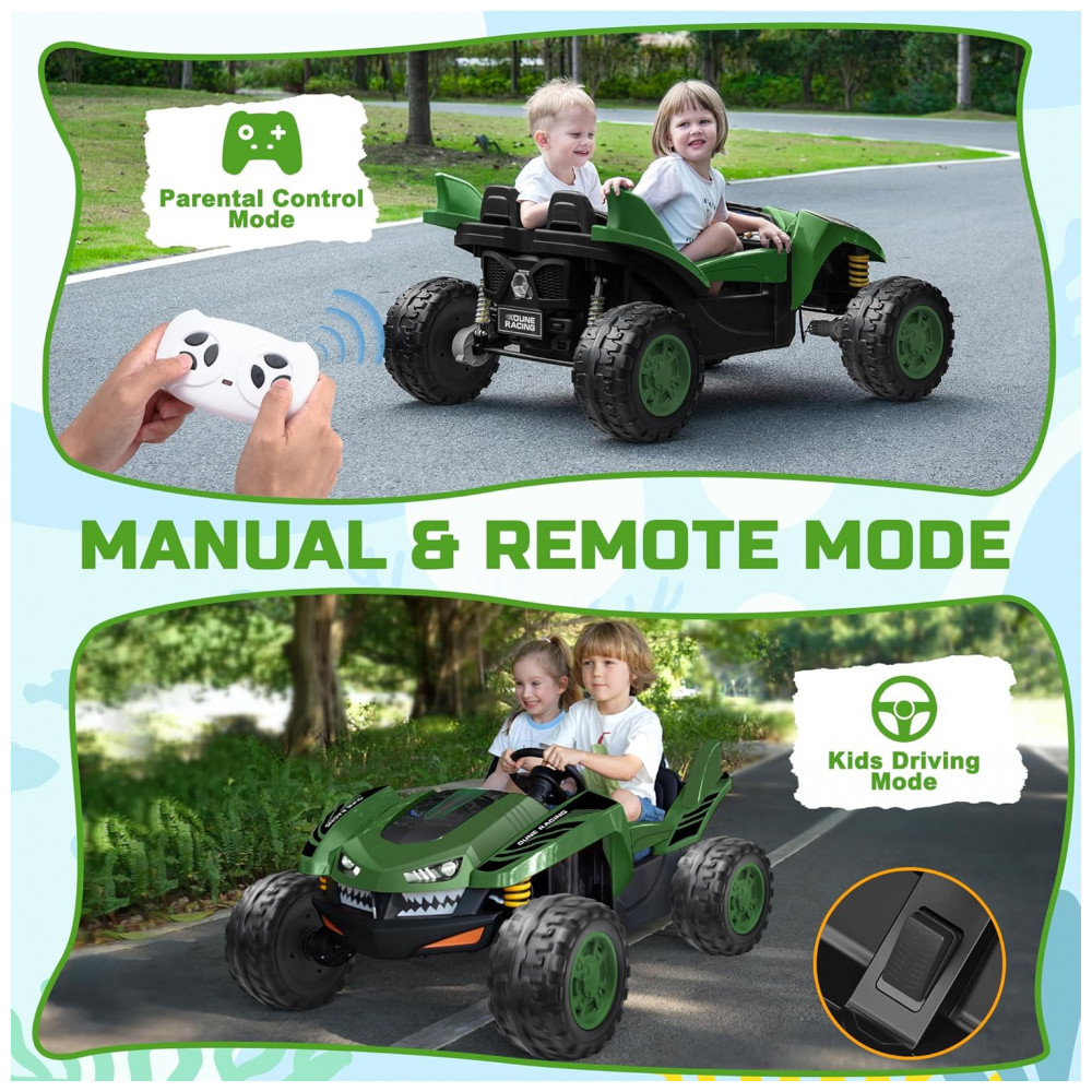 Carro Elétrico Infantil ANPABO Verde 24V 2 Lugares 4 Motores 200W Off-Road UTV Pneus EVA Suspensão Controle Bluetooth 5.1km/h