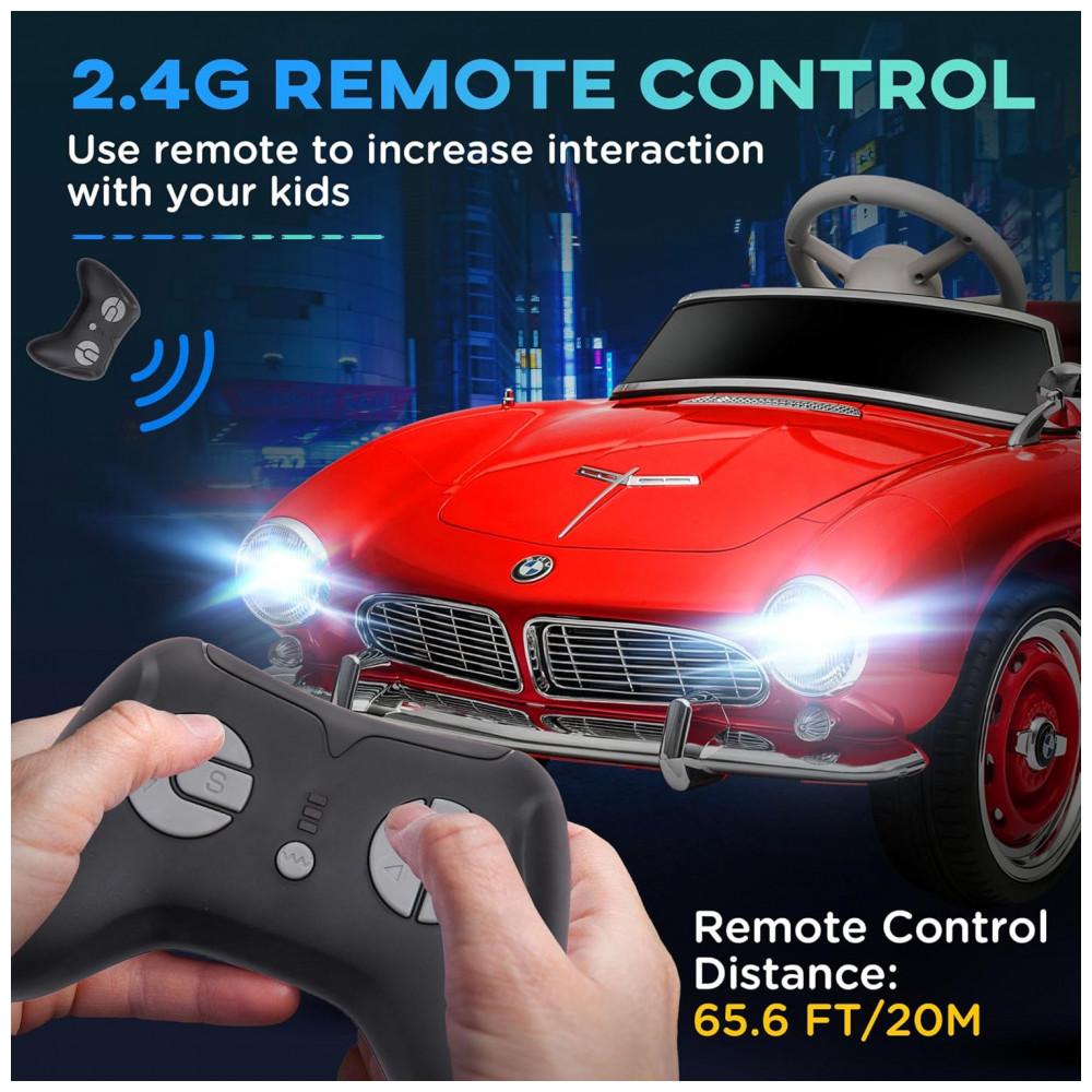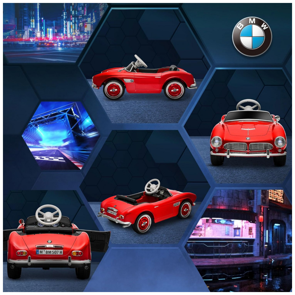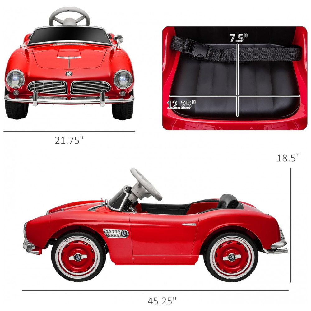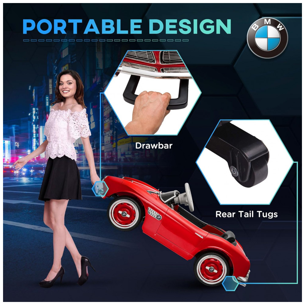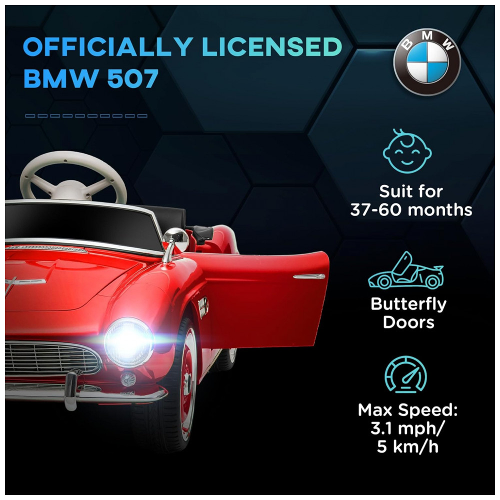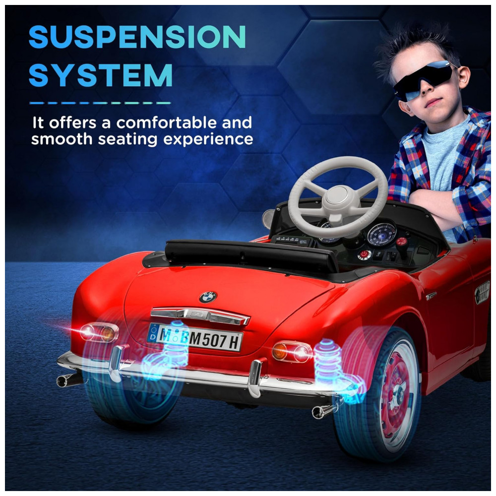 Carro Elétrico Infantil Aosom BMW 507 Licenciado 12V Vermelho com Controle Remoto Suspensão Luzes LED MP3 e Transporte Fácil – de 3 a 6 Anos