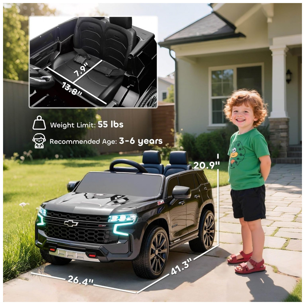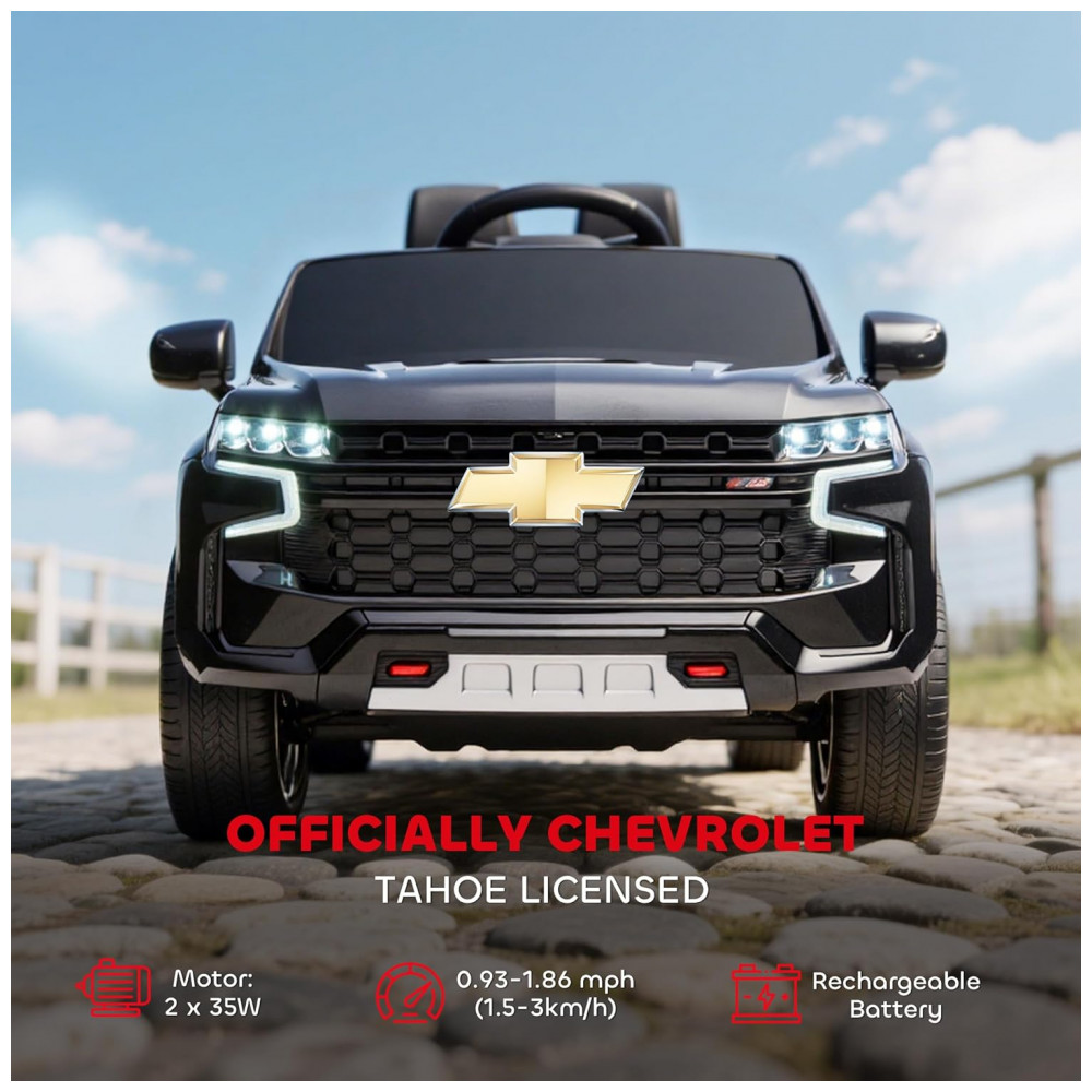 Carro Elétrico Infantil Aosom Licensed Chevrolet Tahoe Bateria 12V 7AH Controle Remoto para Pais Luzes LED Música Suspensão 3 Velocidades Preto