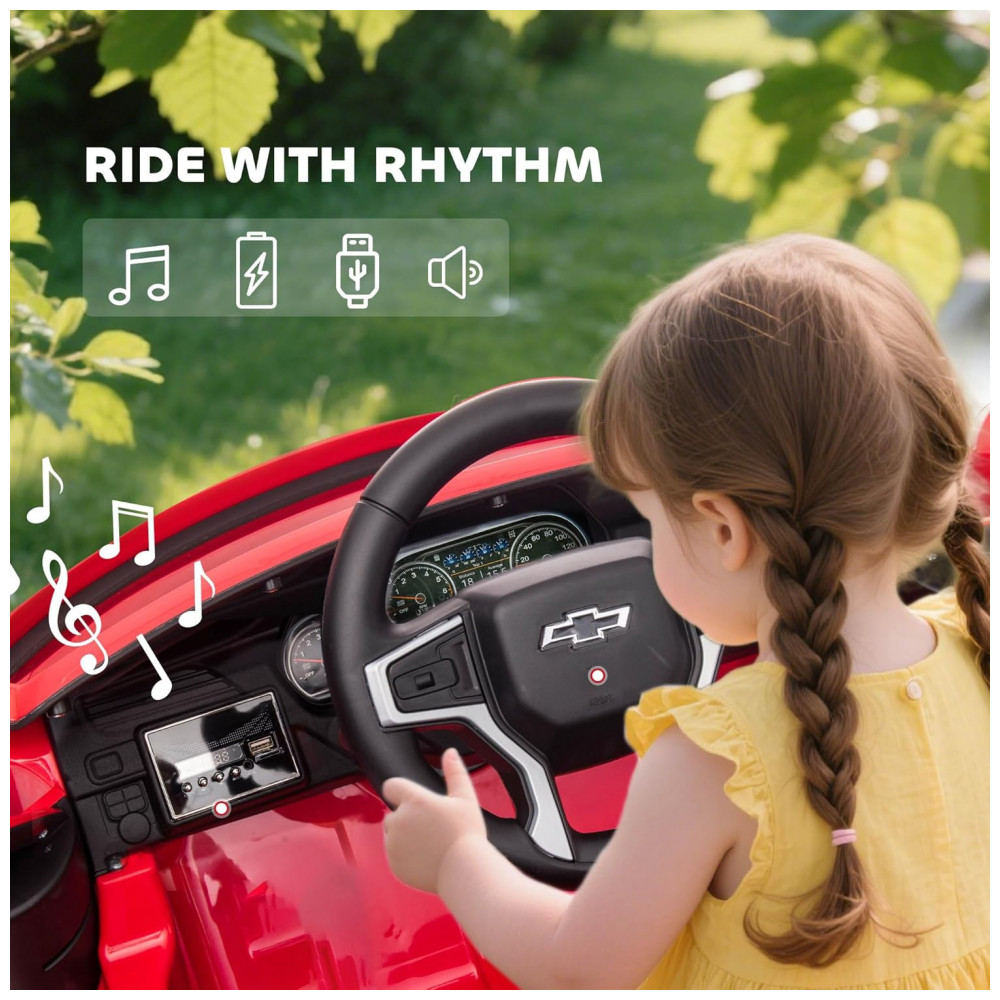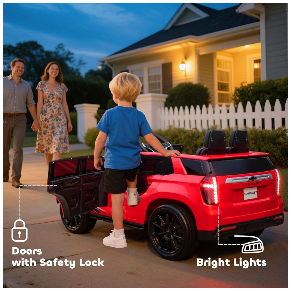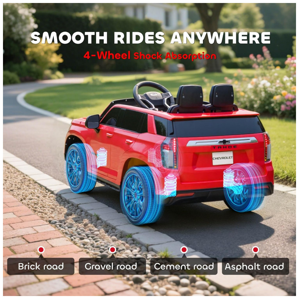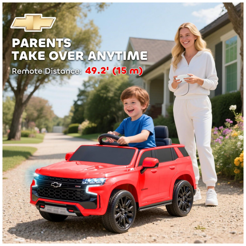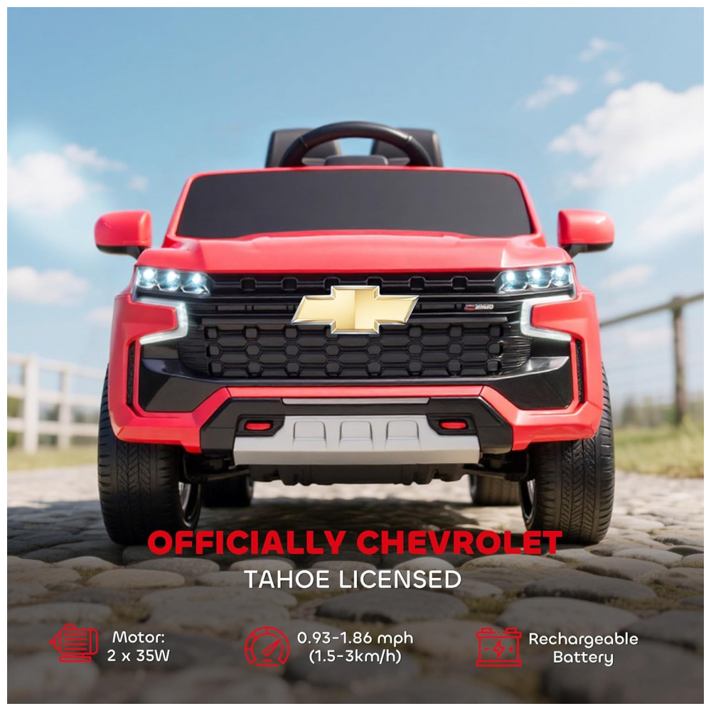 Carro Elétrico Infantil Aosom Licensed Chevrolet Tahoe Bateria 12V 7AH Controle Remoto para Pais Luzes LED Música Suspensão 3 Velocidades Vermelho