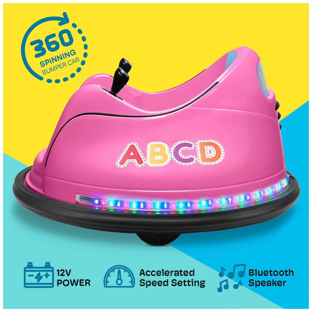 Carro Elétrico Infantil Bate Bate 12V com 2 Velocidades Controle Remoto Luzes LED Bluetooth e Giro de 360º para Crianças de 1 a 5 Anos Kidzone Rosa