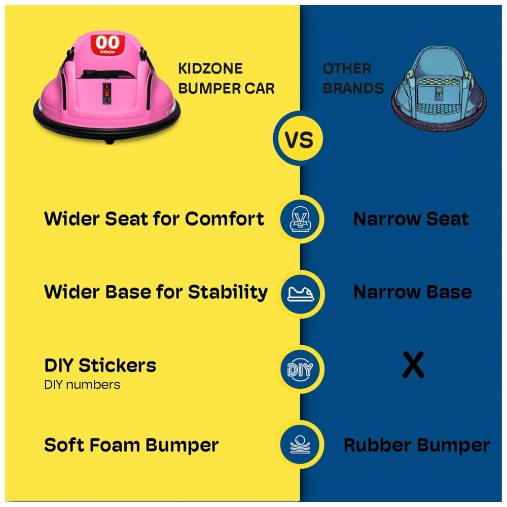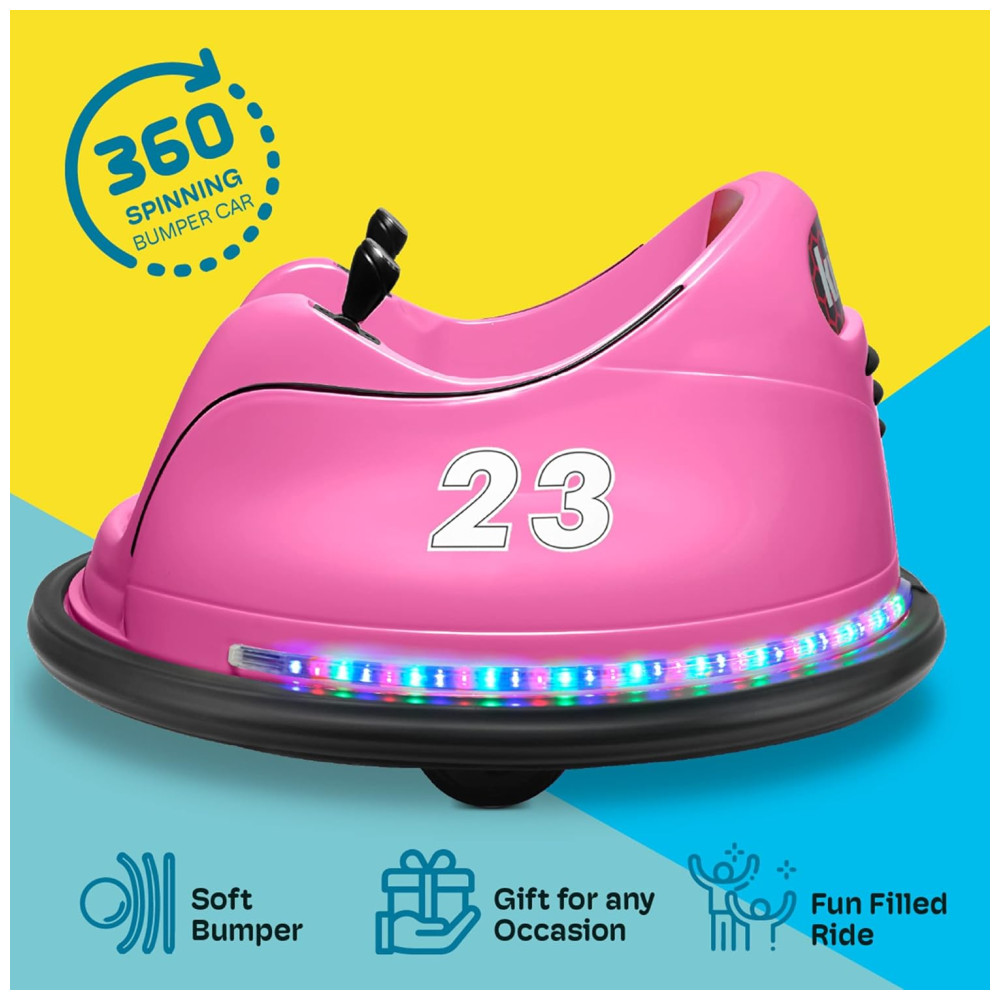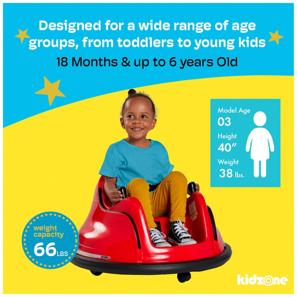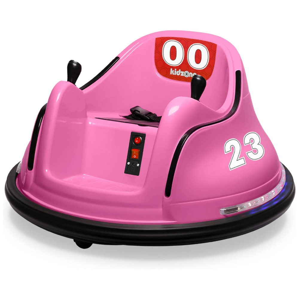 Este é um carro de brinquedo elétrico totalmente recarregável e motorizado da Kidzone, que pode girar 360 graus com controles simples de joystick. Com uma velocidade máxima de 1,2 km/h e motor de 6V 30W, é uma ótima ferramenta de jogo para crianças de 1 a 5 anos com capacidade máxima de peso de 29,93 quilos. O carro é construído com uma carcaça de plástico resistente e tem um sistema externo de para choque macio que permite que você bata se fizer a curva errada. Certificado pela ASTM para este carro de choque, inclui um cinto de segurança, pneus anti-furos e luzes LED coloridas que aumentam o quociente de diversão.