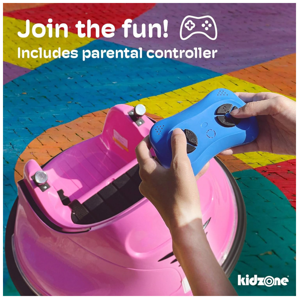 Carro Elétrico Infantil Bate Bate 6V com Adesivo Personalizável Controle Remoto Luzes LED e Giro de 360º para Crianças de 1 a 5 Anos Kidzone Rosa