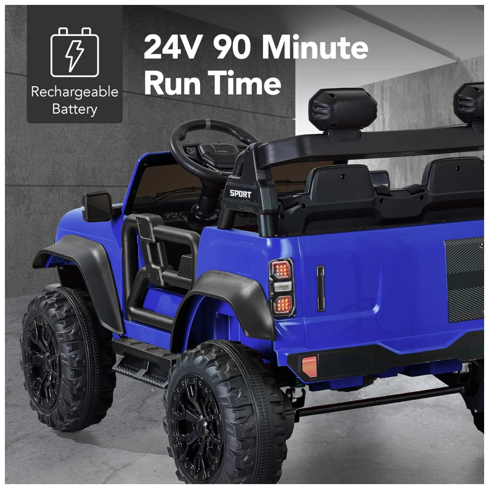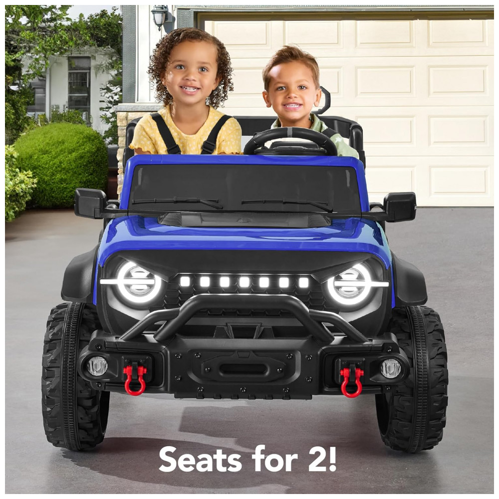 Carro Elétrico Infantil Best Choice Products 24V Azul Escuro Caminhão 2 Lugares com Controle Remoto Bluetooth Luzes LED e Capacidade para 60 kg