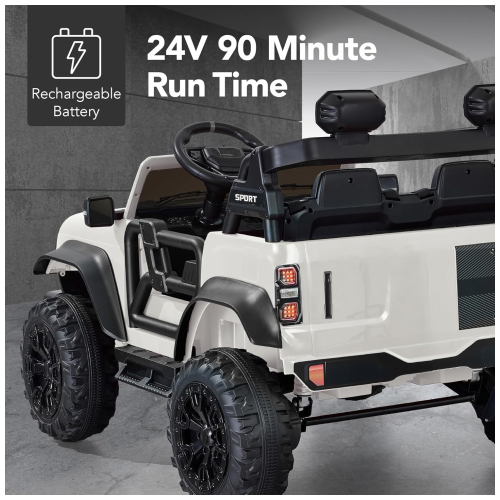 Carro Elétrico Infantil Best Choice Products 24V Branco Caminhão 2 Lugares com Controle Remoto Bluetooth Luzes LED e Capacidade para 60 kg