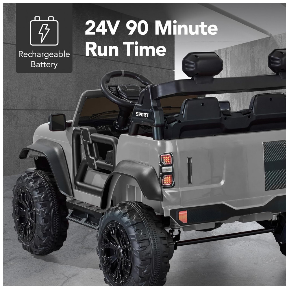 Carro Elétrico Infantil Best Choice Products 24V Cinza Claro Caminhão 2 Lugares com Controle Remoto Bluetooth Luzes LED e Capacidade para 60 kg
