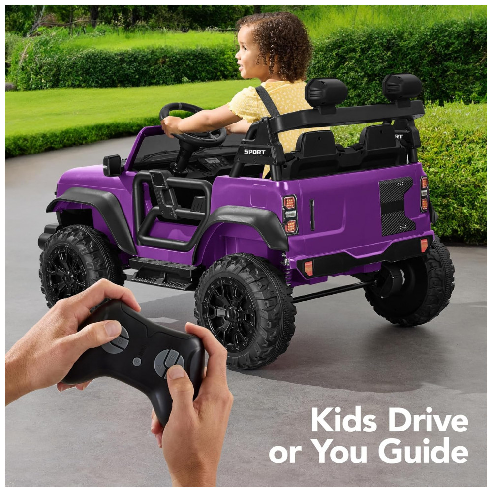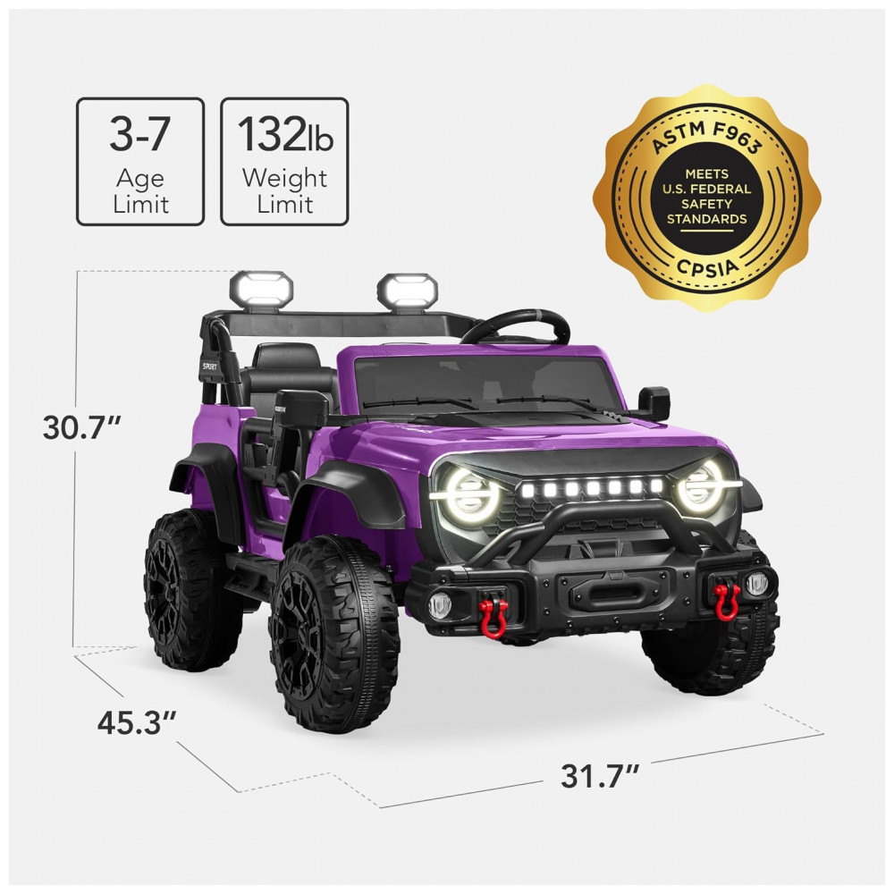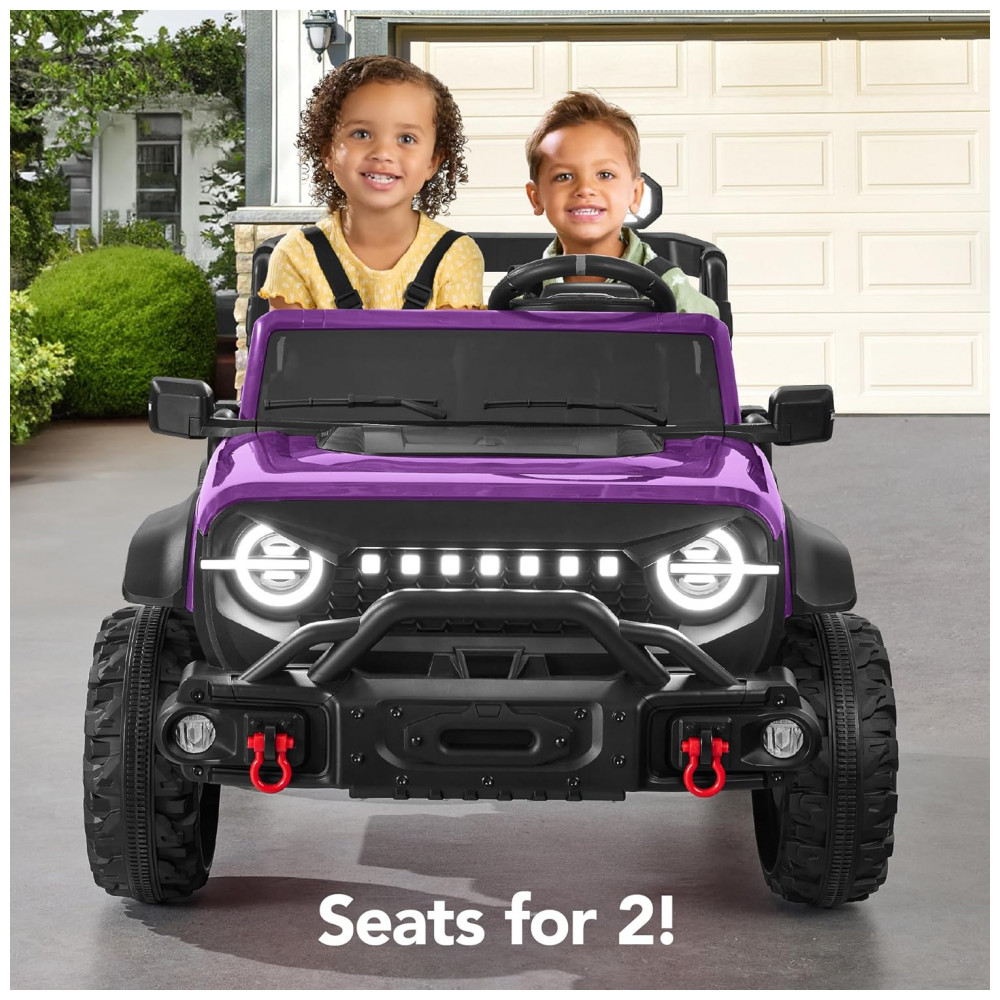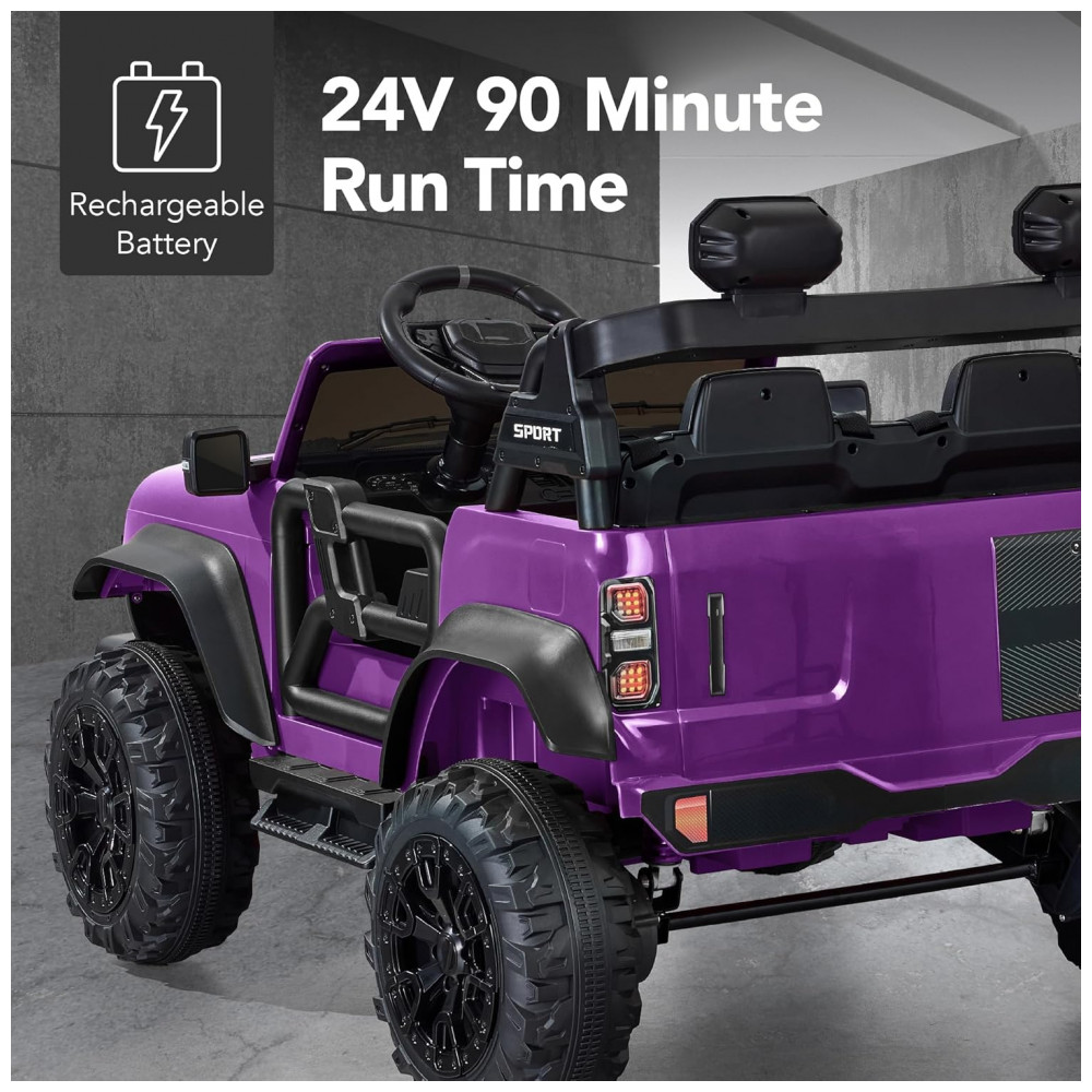 Carro Elétrico Infantil Best Choice Products 24V Roxo Caminhão 2 Lugares com Controle Remoto Bluetooth Luzes LED e Capacidade para 60 kg