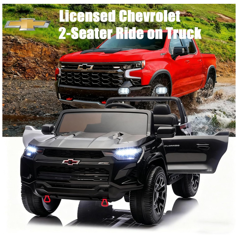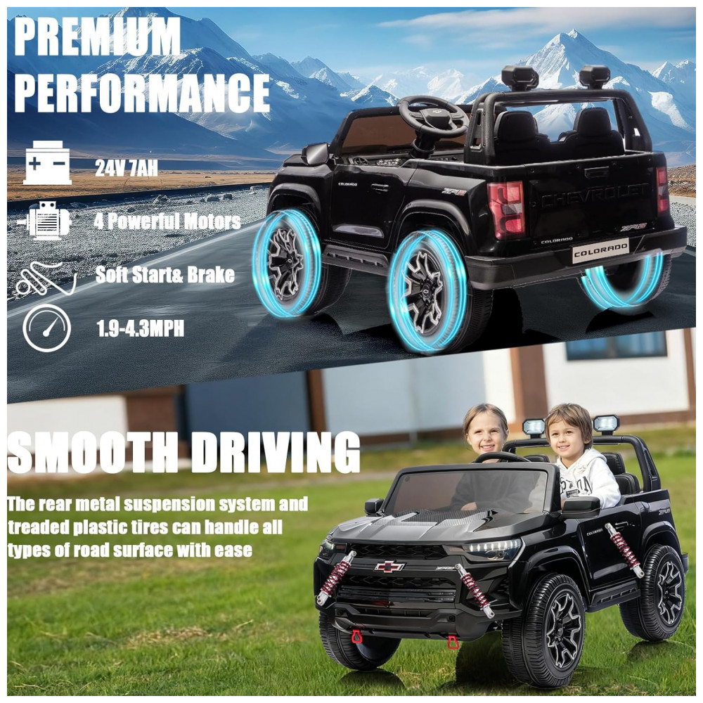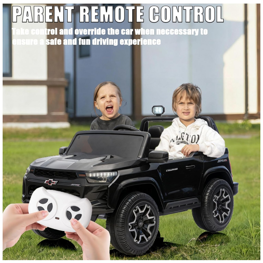 Carro Elétrico Infantil Chevrolet a Bateria 24V com 2 Lugares Música Luz LED e Controle Remoto POSTACK Preto