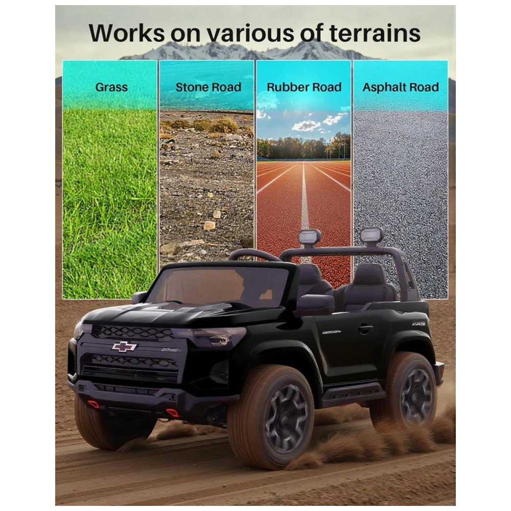 Carro Elétrico Infantil Chevrolet Licenciado Joywhale 24V 4WD 2 Lugares 320W Controle Remoto Suspensão Música Luzes LED Preto