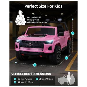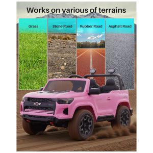 Carro Elétrico Infantil Chevrolet Licenciado Joywhale 24V 4WD 2 Lugares 320W Controle Remoto Suspensão Música Luzes LED Rosa