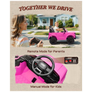 Com controle remoto parental, os adultos podem guiar o passeio a até 30 metros de distância, garantindo segurança total para os pequenos. O sistema de suspensão nas quatro rodas, cintos de segurança de três pontos e portas seguras oferecem estabilidade e tranquilidade durante o uso.