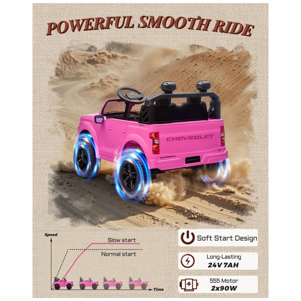 Descubra o Carro Elétrico Infantil Chevrolet Silverado 24V, licenciado oficialmente e projetado para proporcionar uma experiência de direção realista para crianças apaixonadas por caminhonetes robustas. Com detalhes autênticos, grade frontal imponente e logotipos originais Chevrolet, este veículo de brinquedo traz estilo e potência para os pequenos motoristas.