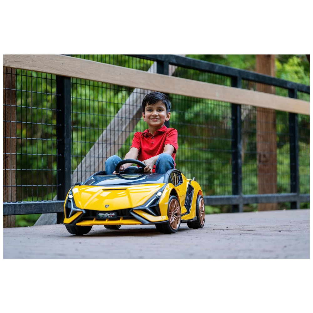 Carro Elétrico Infantil com Bateria Recarregável BEST RIDE ON CARS New Lamborghini Sian 12V Yellow Amarelo