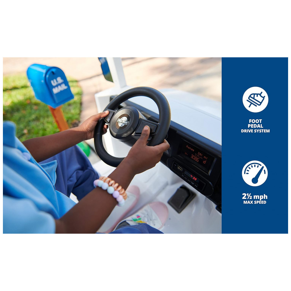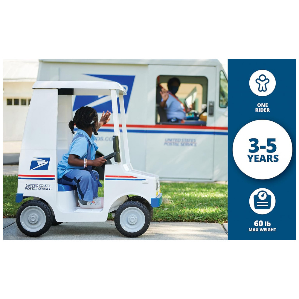 O brinquedo de passeio de caminhão de entrega de correio USPS é perfeito para a calçada, quintal ou garagem. Vem com caixa de correio e 3 envelopes de plástico para diversão na entrega
