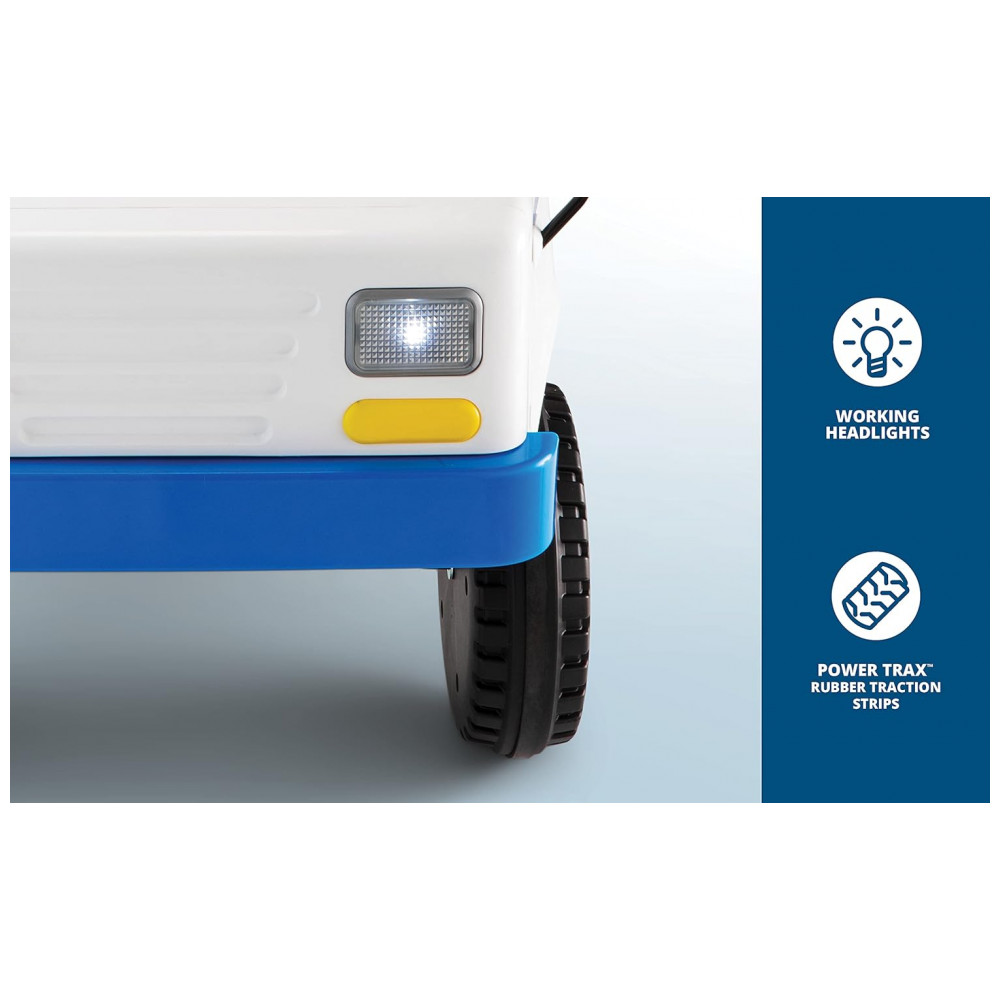 Os pneus de tira de tração de borracha Power Trax mantêm o passeio suave e constante. Vem com uma bateria recarregável de 6 volts e um carregador de parede para que a diversão nunca precise parar por muito tempo