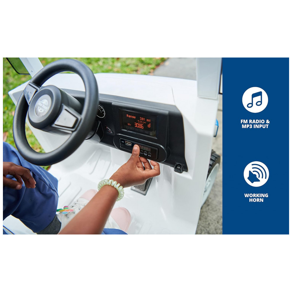 Carro Elétrico Infantil Correio com Farol LED Sons e Bateria 6V Recarregável Kid Trax Branco