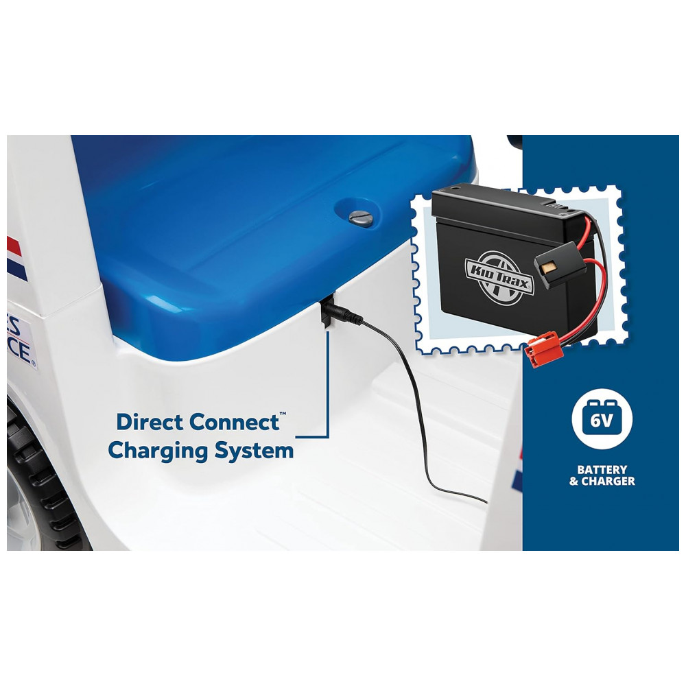 Apresenta slot de correio, porta traseira de abertura, faróis de trabalho e buzina , como um caminhão de correio real Além disso, seu filho pode tocar suas músicas favoritas na entrada de rádio FM , MP3 player