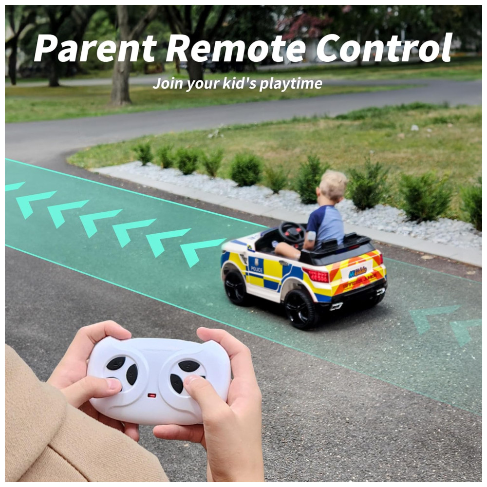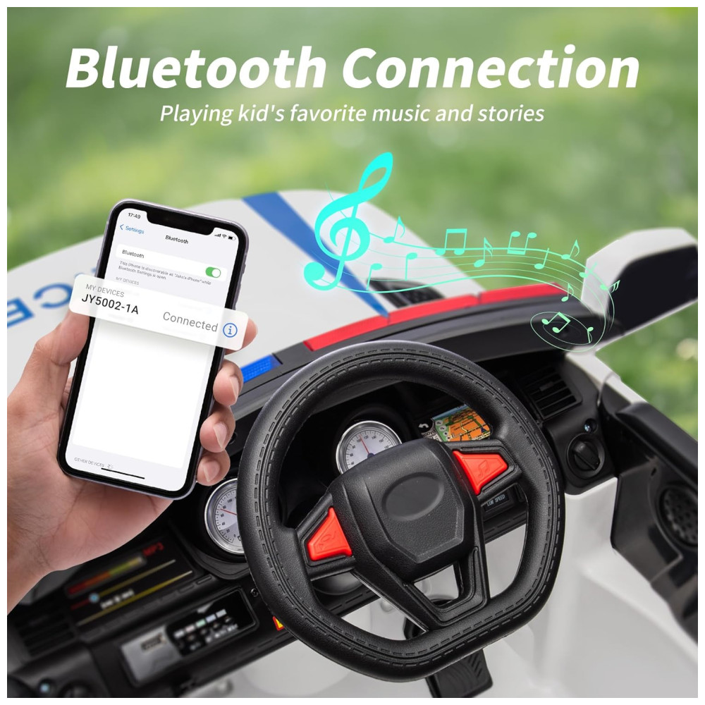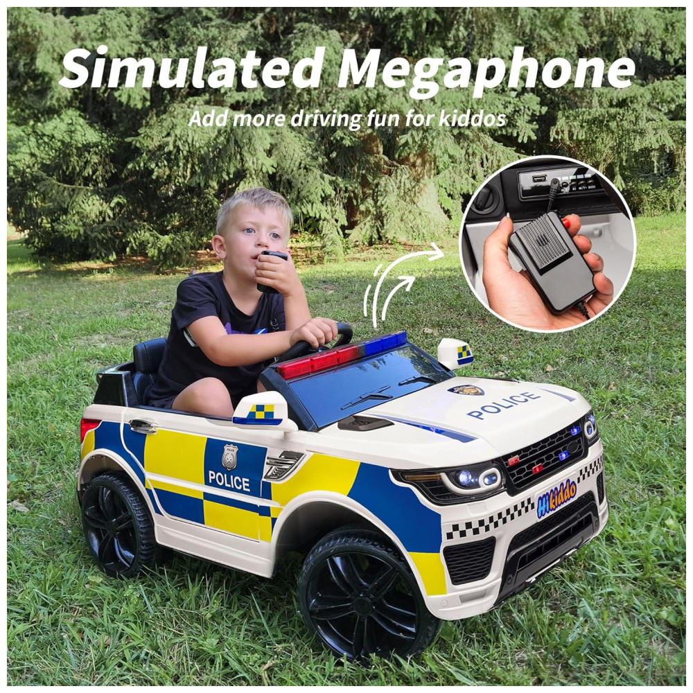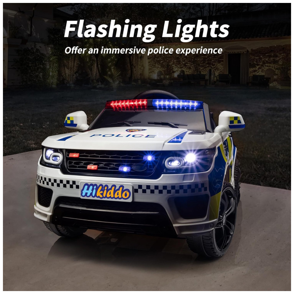 Equipado com motores de 400W atualizados, o carro alcança velocidades realistas de até 8 km/h (5 mph) e inclui recursos policiais realistas, como sirenes, alto-falantes e luzes piscantes, tornando cada passeio ainda mais divertido.