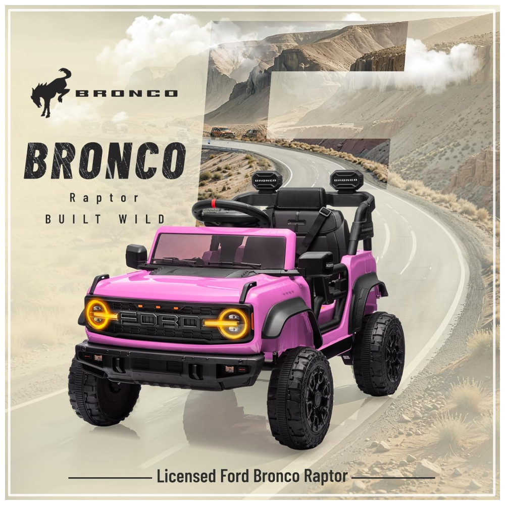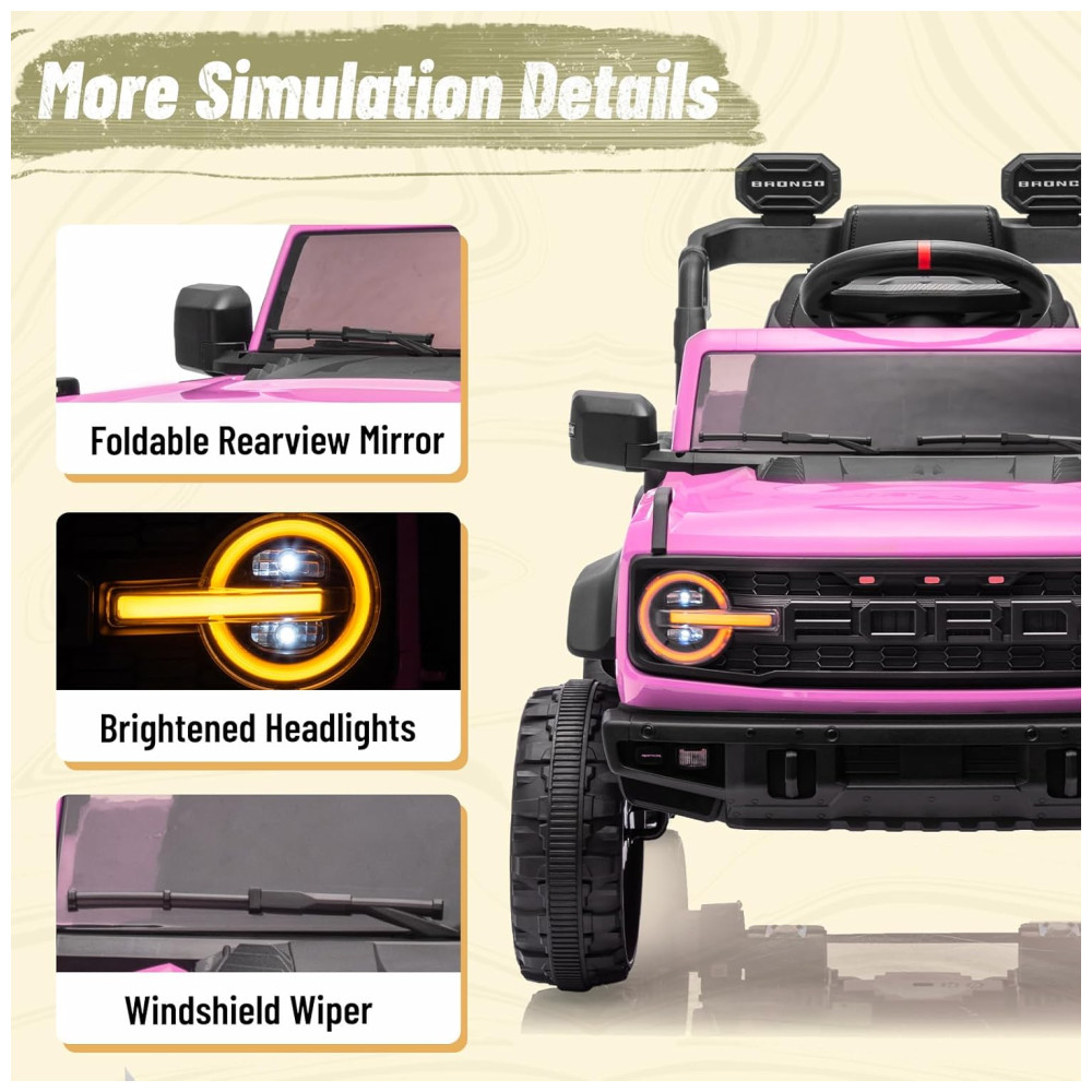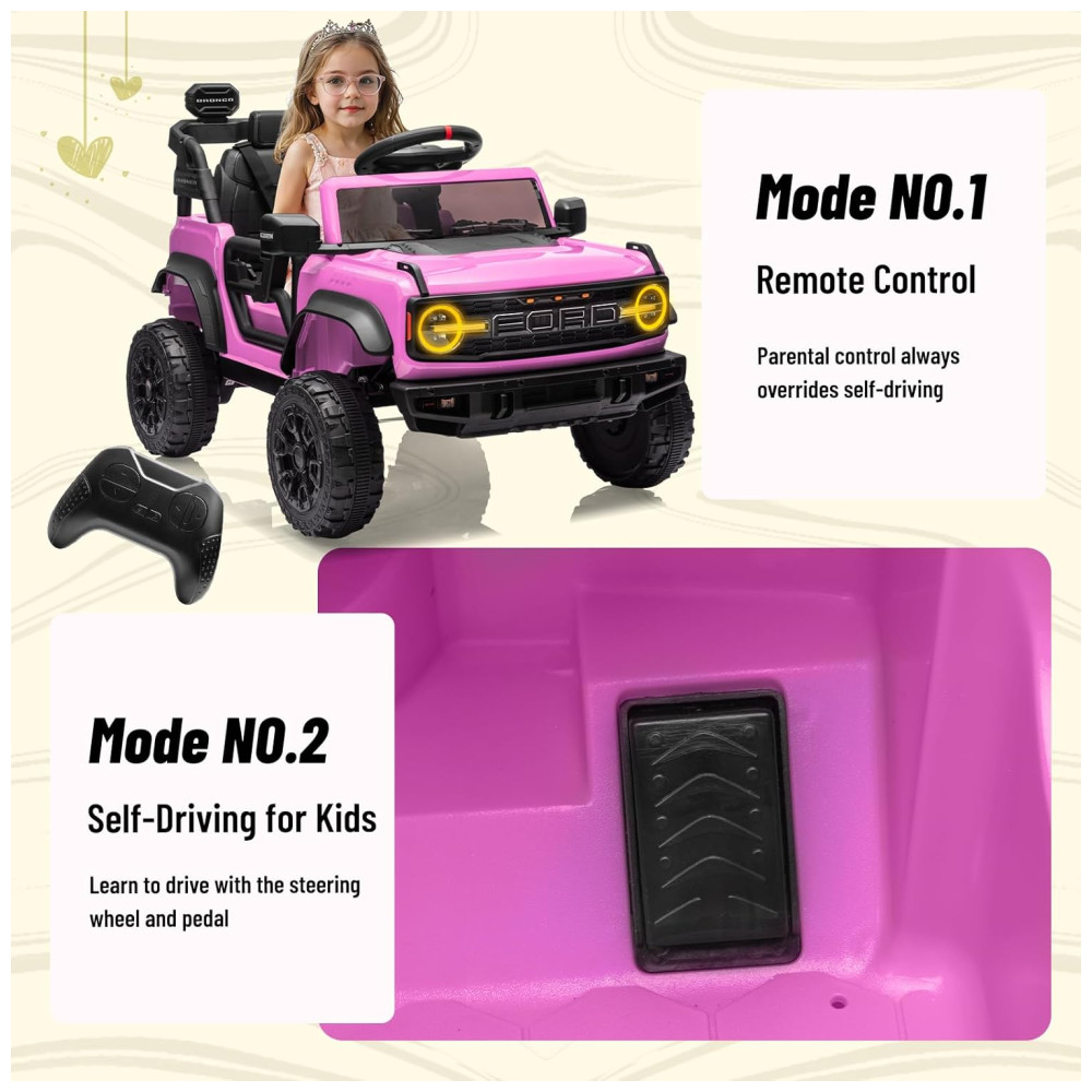 Carro Elétrico Infantil Ford Bronco Raptor com Controle Remoto 3 Velocidades Suspensão nas 4 Rodas Música via Bluetooth e Luzes LED 12V YOFE Rosa