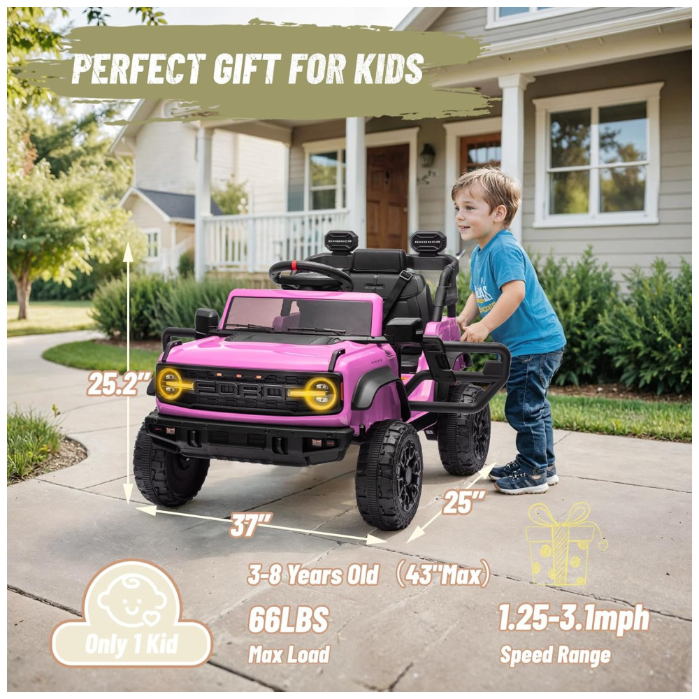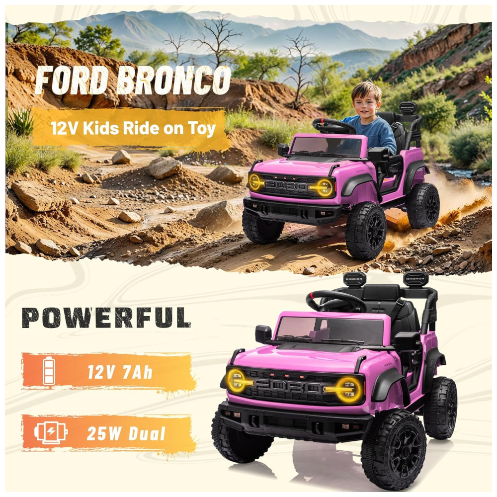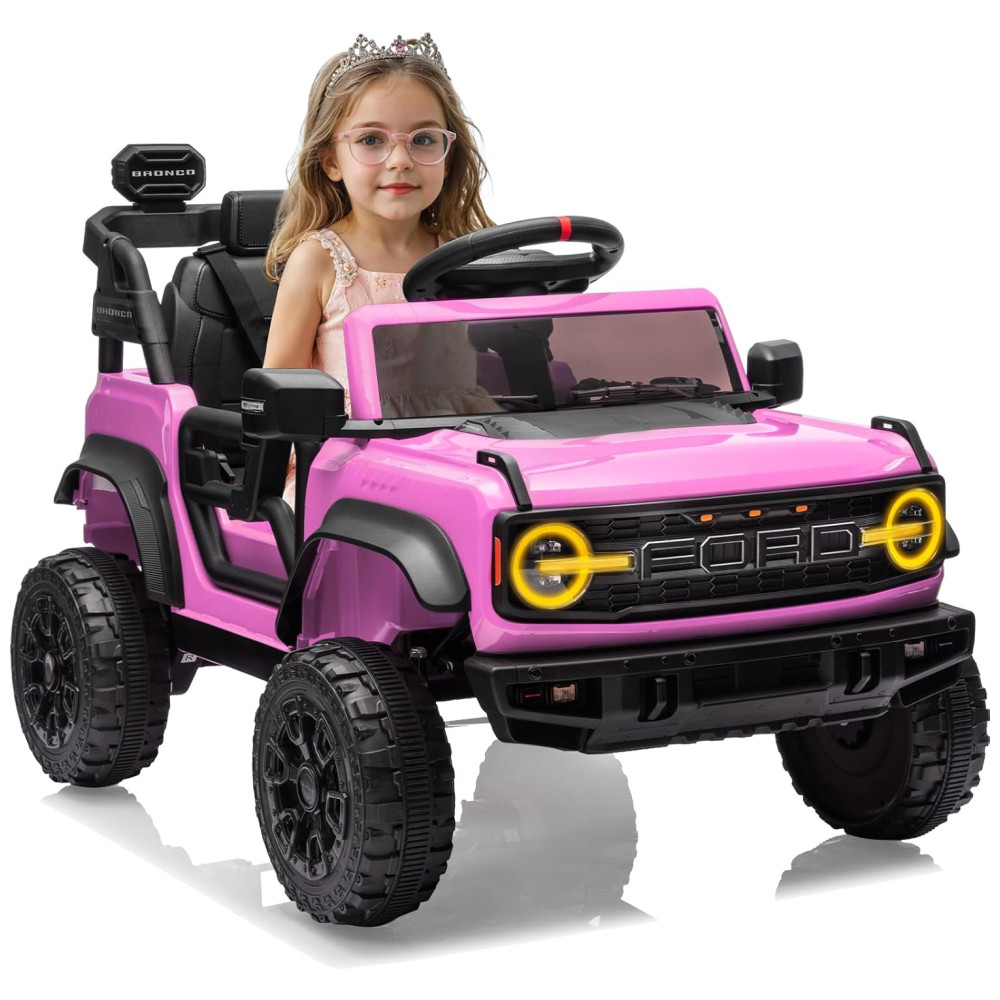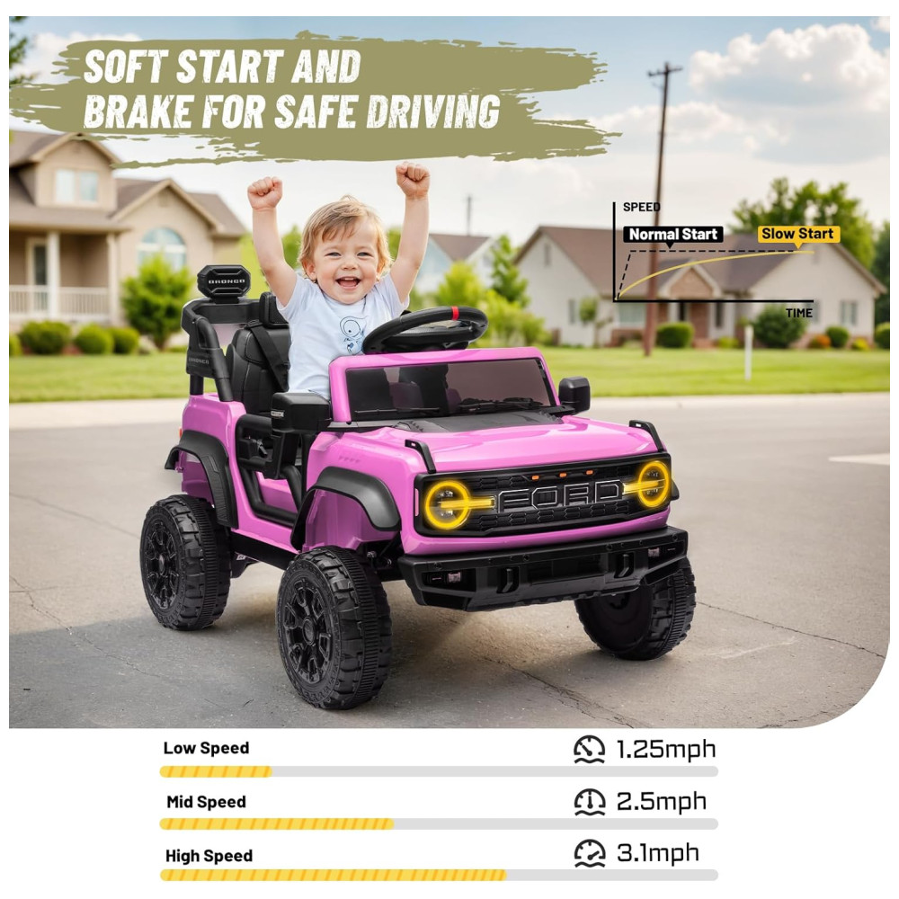 Carro Elétrico Infantil Ford Bronco Raptor com Controle Remoto 3 Velocidades Suspensão nas 4 Rodas Música via Bluetooth e Luzes LED 12V YOFE Rosa