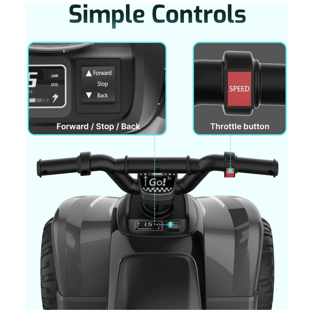Com controle simples por botão, o RT1 possui modos de avanço e ré em duas velocidades, com velocidade máxima segura de 2,4 km/h, perfeita para os primeiros passos no volante. Seu design inclui sistema anti-capotamento, garantindo segurança durante as brincadeiras.