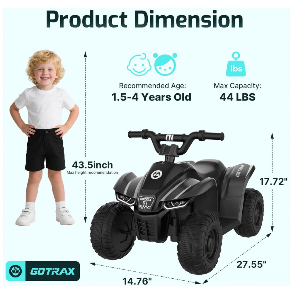 O Carro Elétrico Infantil Gotrax RT1 é ideal para crianças de 1,5 a 4 anos, com bateria recarregável de 12V 4,5 Ah que oferece até 80 minutos de diversão contínua. Seus pneus grandes de 8 polegadas garantem boa estabilidade e um passeio suave, mesmo em superfícies pavimentadas.