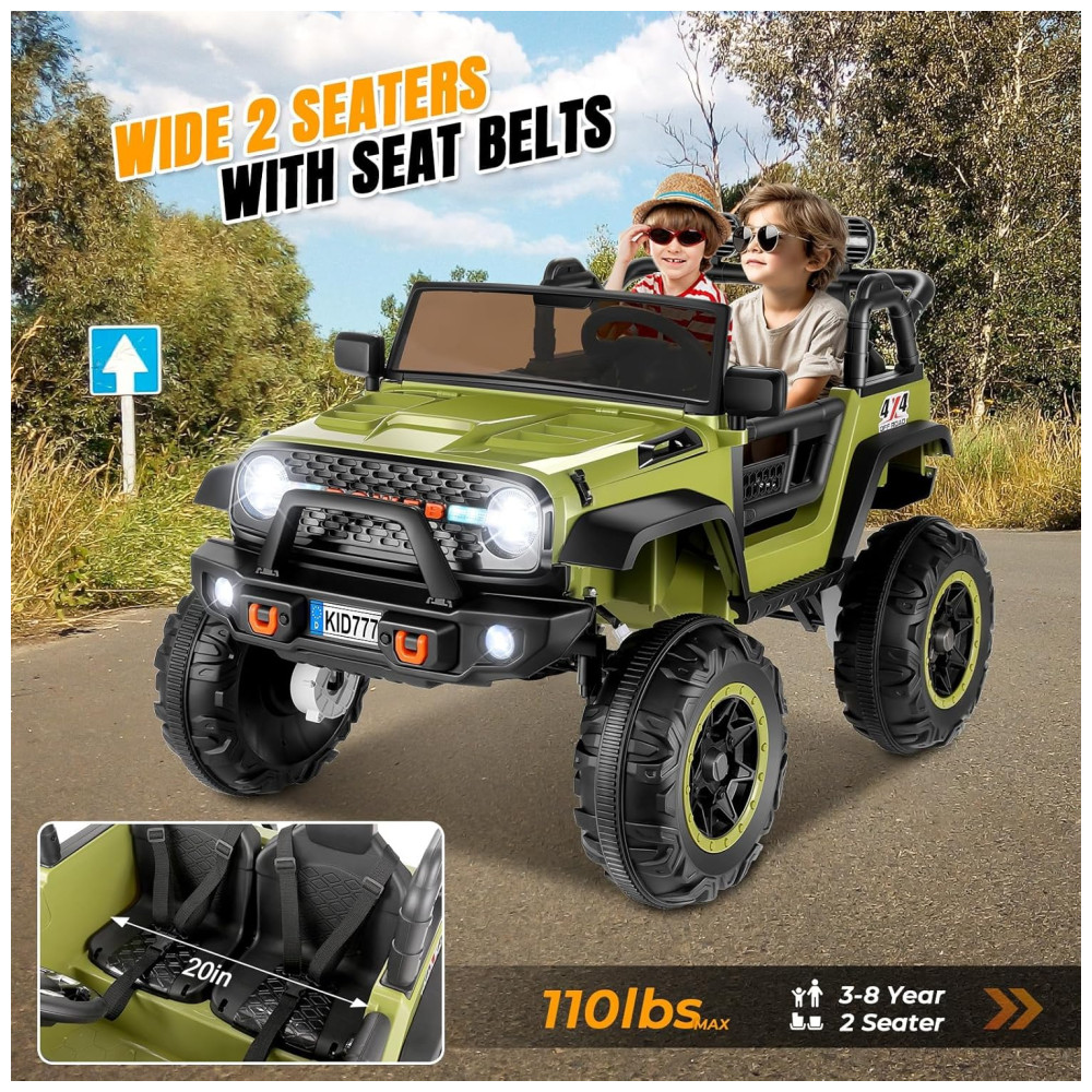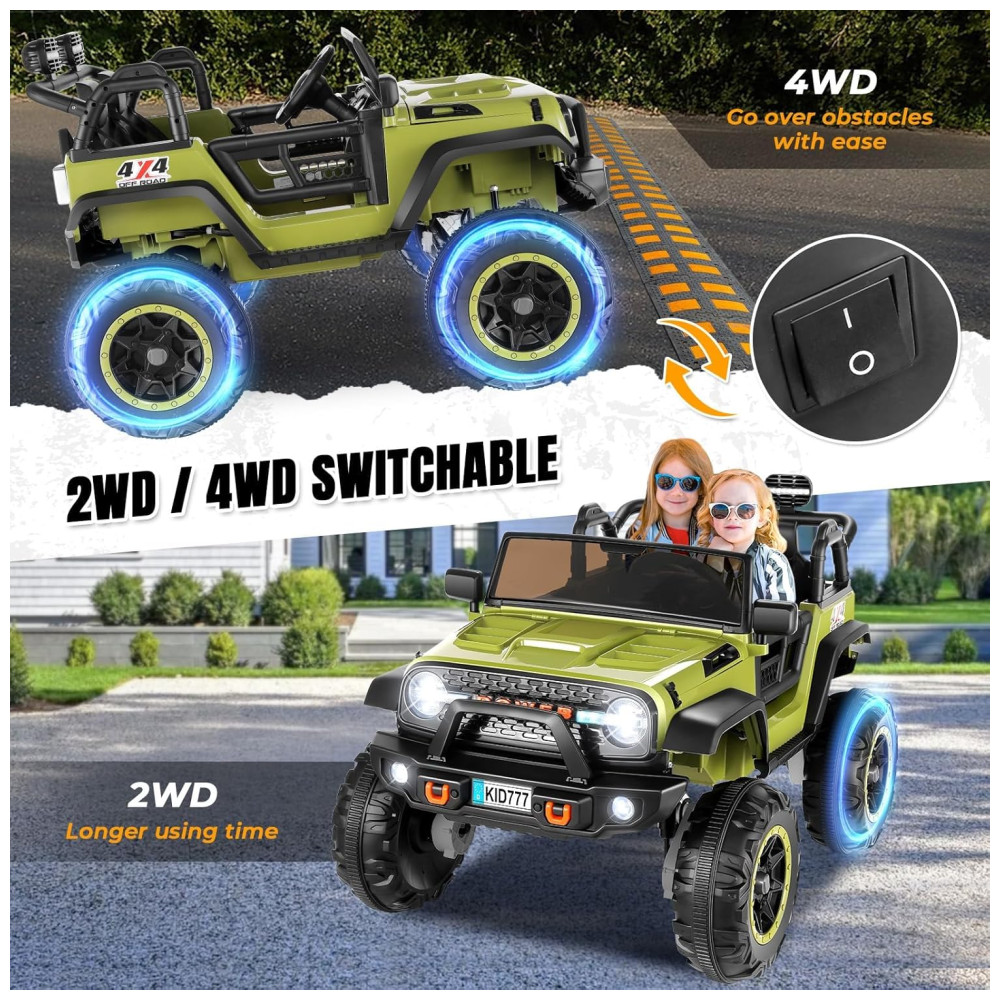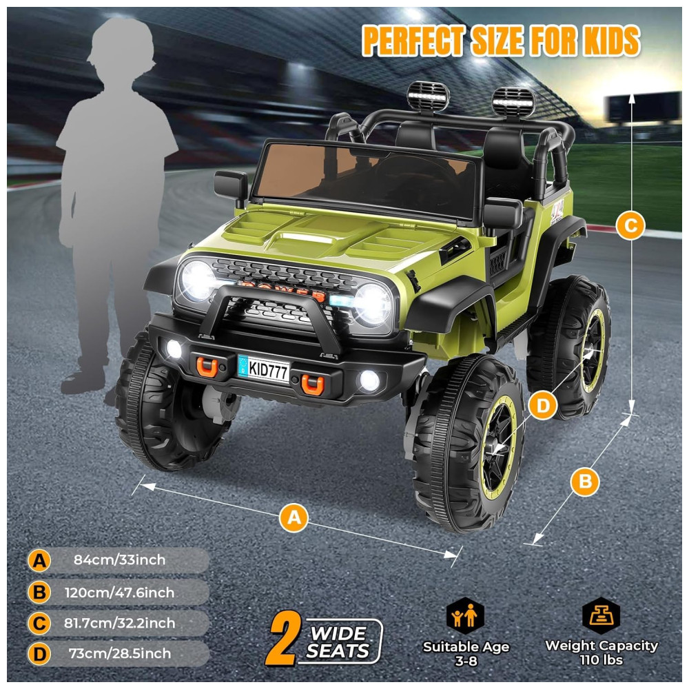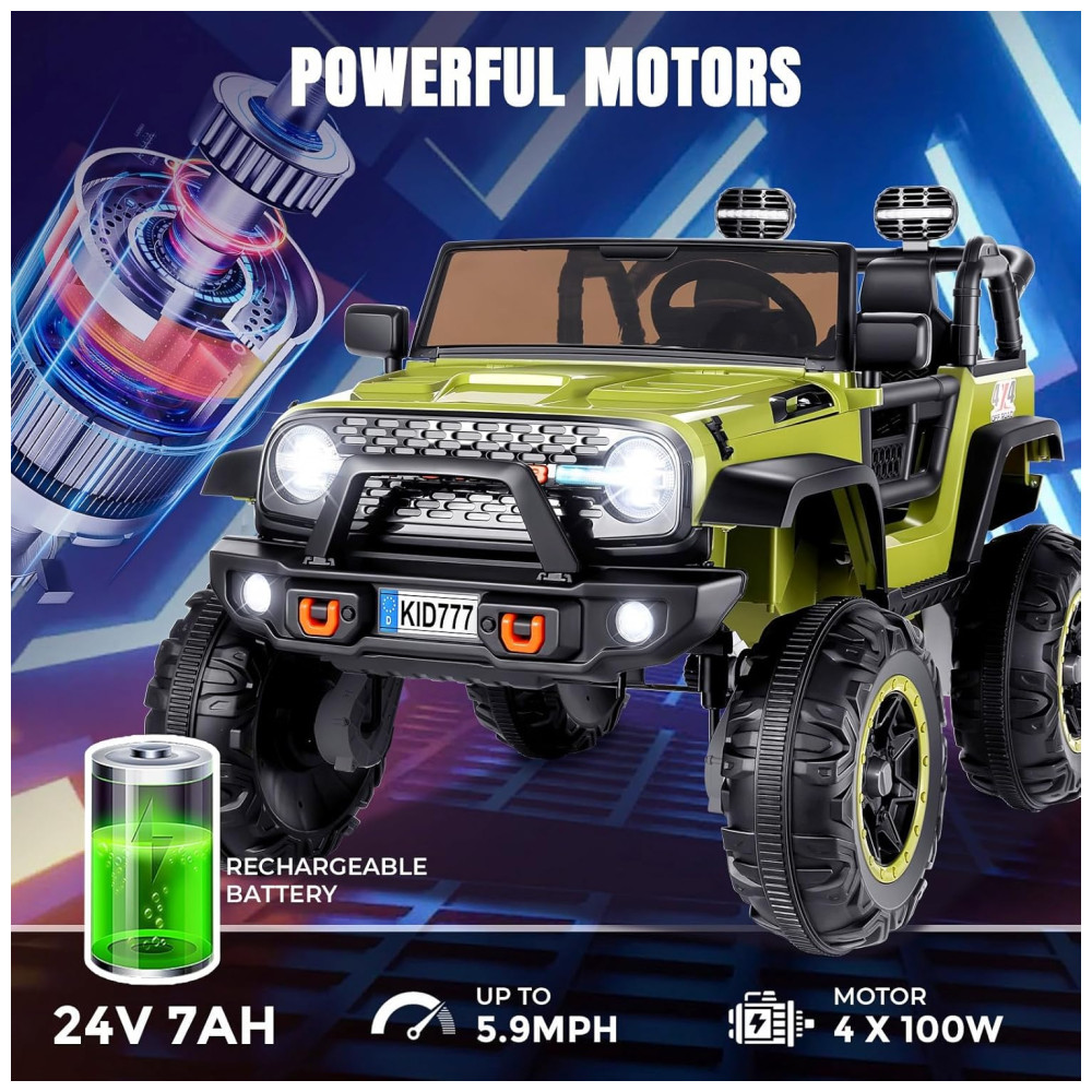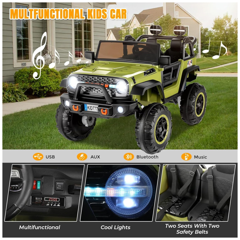 Carro Elétrico Infantil Jeep 4×4 com Controle Remoto 2 Lugares Música via Bluetooth e Luzes LED 24V Hikole Verde