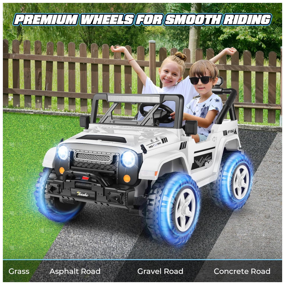 Carro Elétrico Infantil Jeep com Controle Remoto 2 Lugares Assento Extra Largo Rodas com Maior Durabilidade e Luz LED 24V Hikole Branco