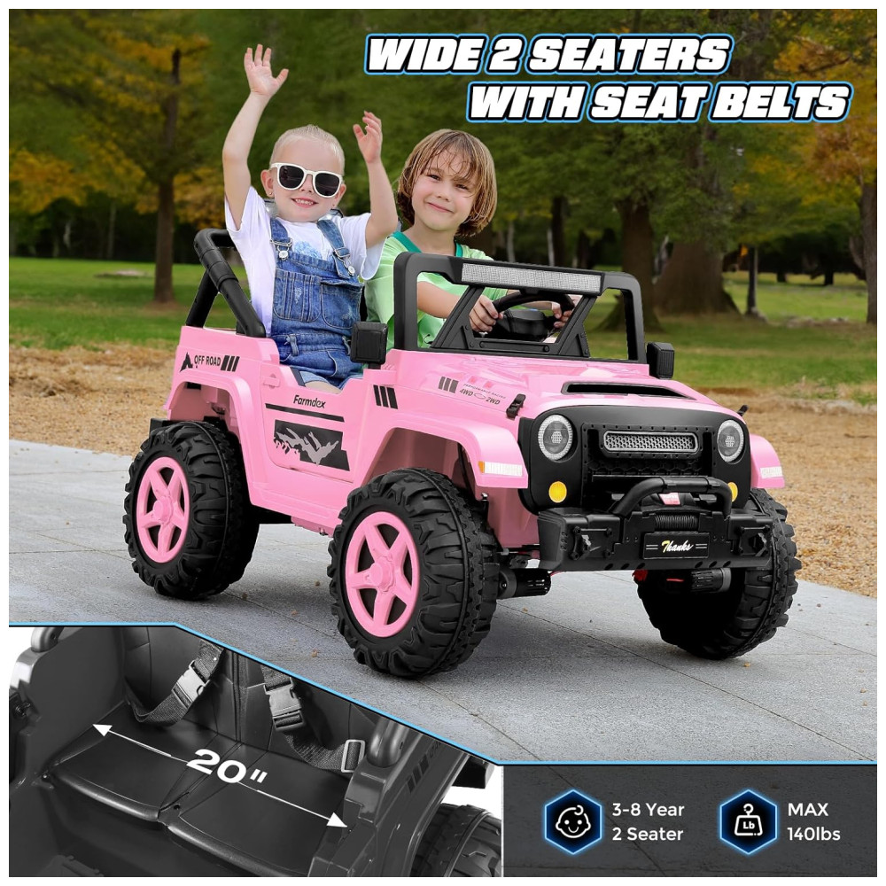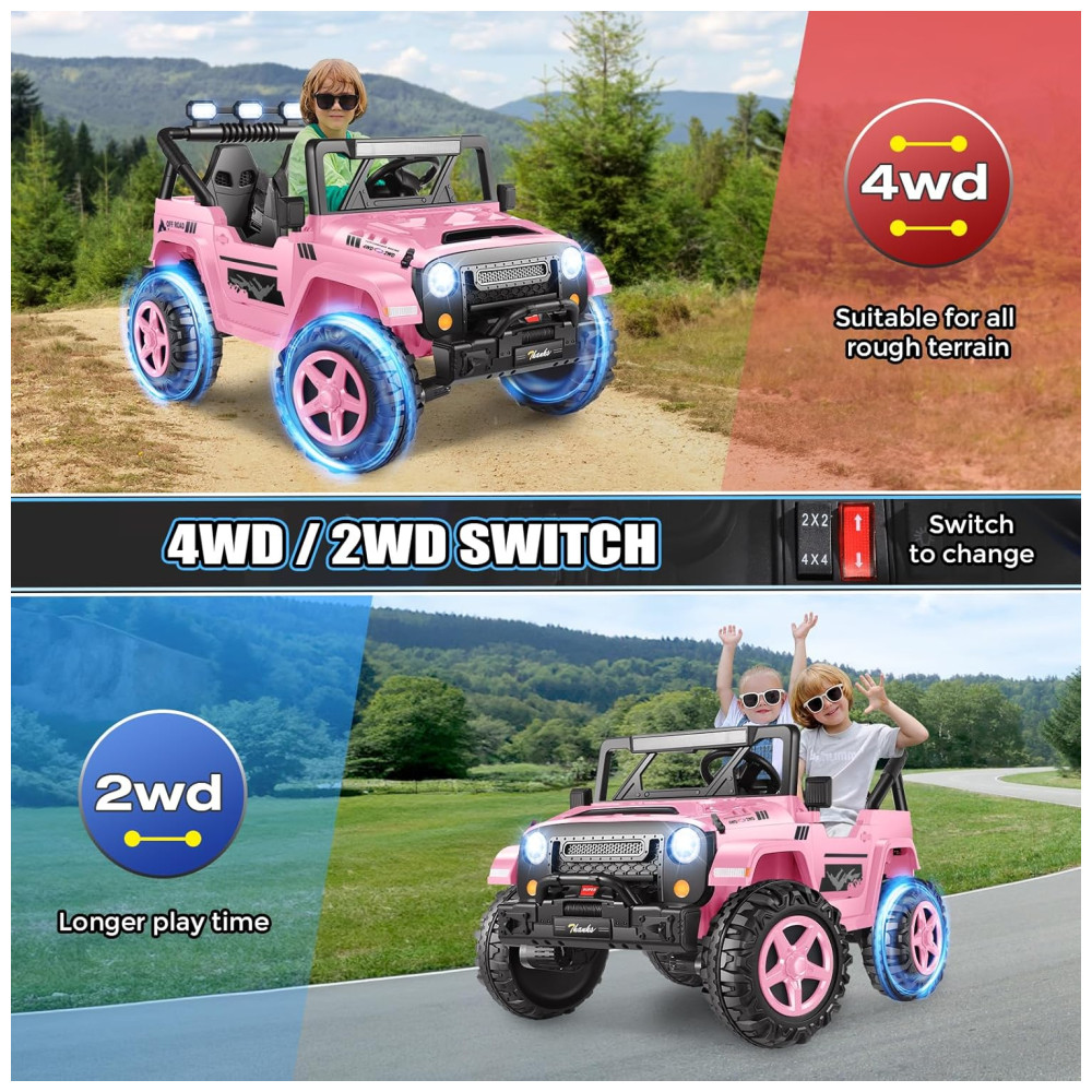 Carro Elétrico Infantil Jeep com Controle Remoto 2 Lugares Assento Extra Largo Rodas com Maior Durabilidade e Luz LED 24V Hikole Rosa Claro