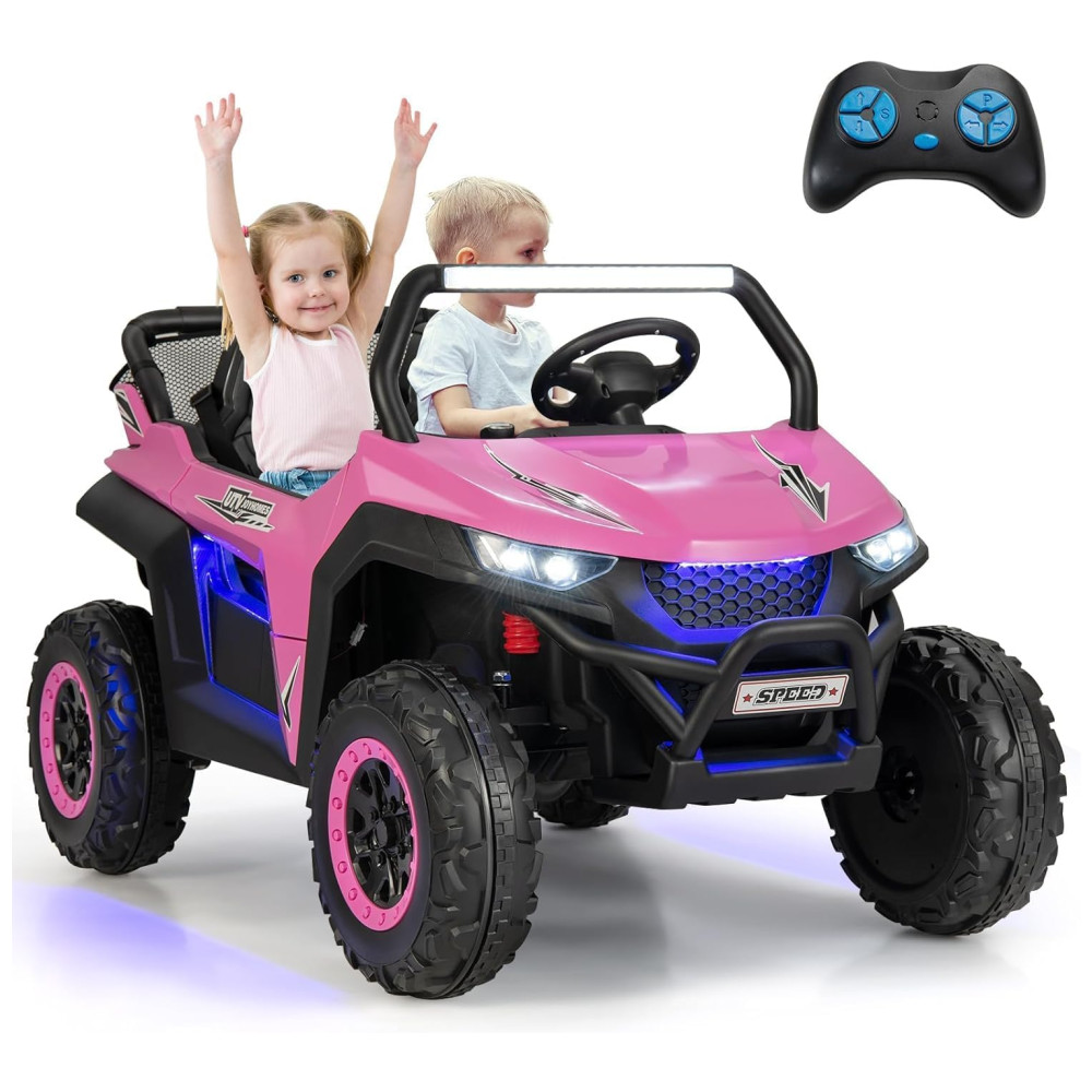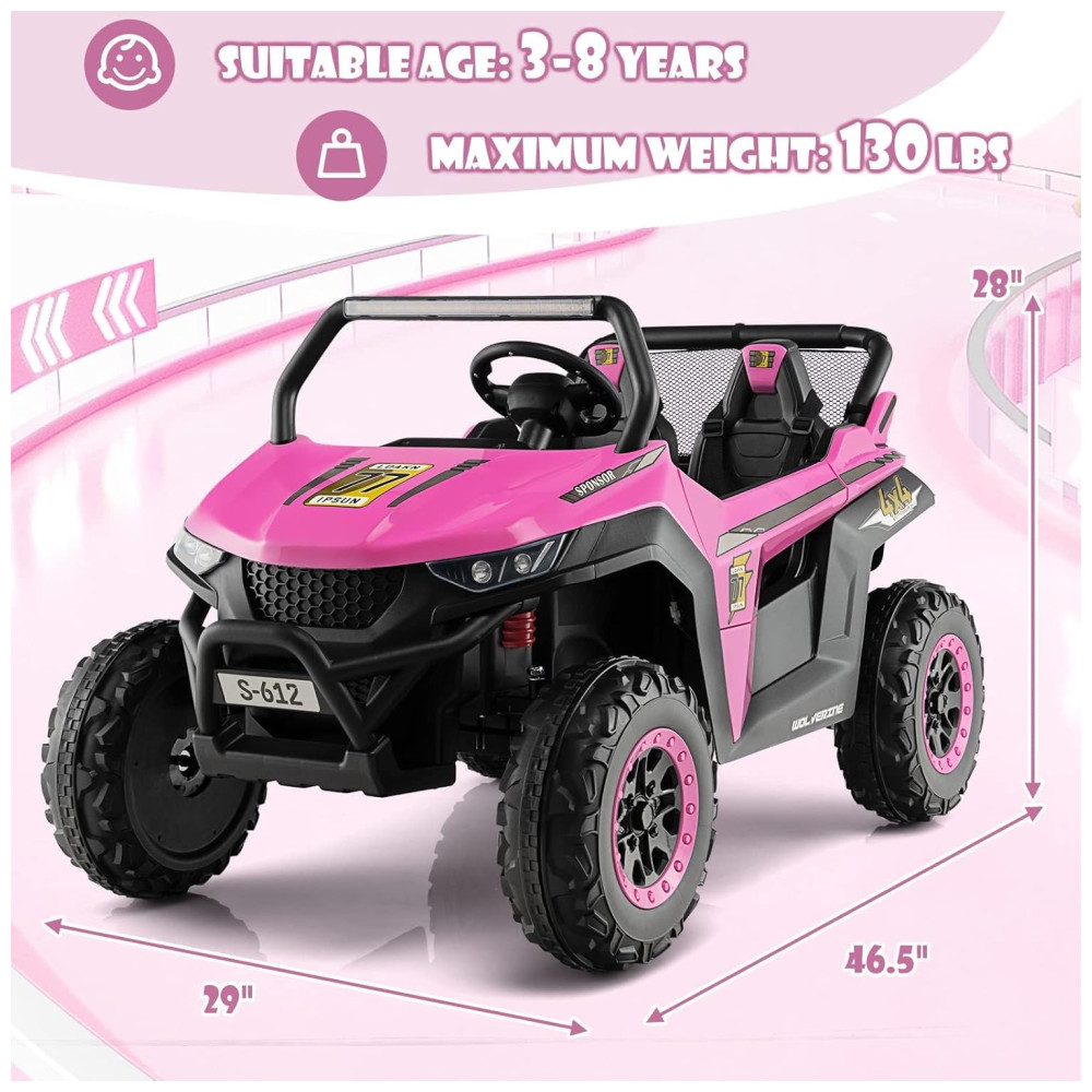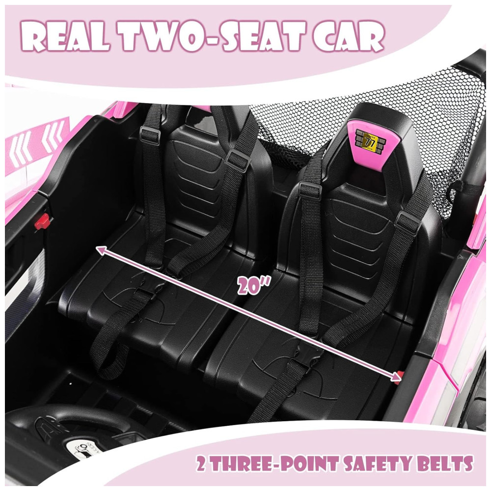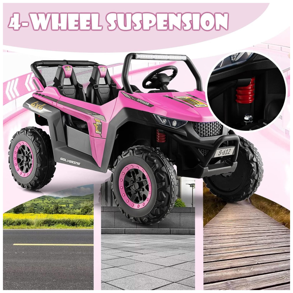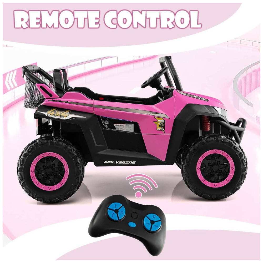 Carro Elétrico Infantil Jeep com Controle Remoto 2 Lugares Suspensão de Mola Partida Suave Música via Bluetooth e FM 12V Olakids Rosa