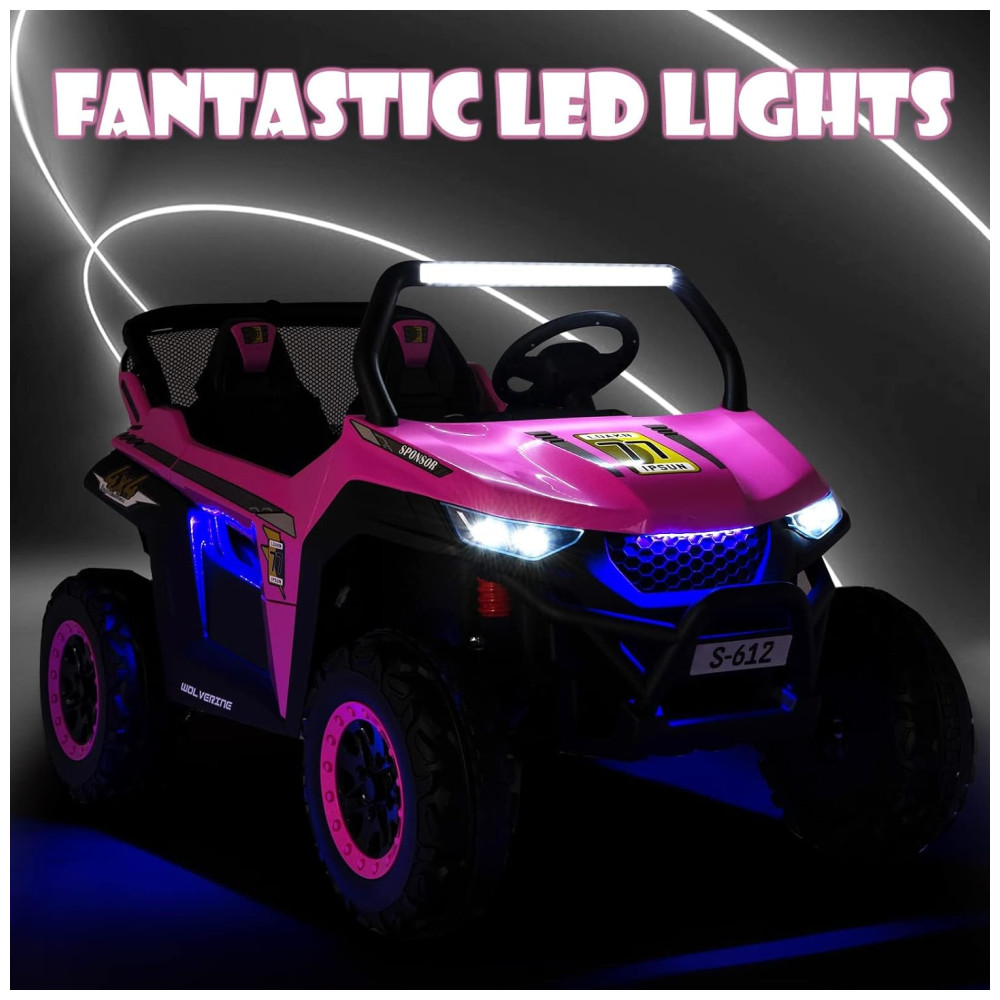 O UTV Infantil de 2 lugares é a escolha ideal para crianças que buscam autonomia e diversão durante suas brincadeiras. Com um design realista e recursos que garantem segurança e entretenimento, este carrinho vai encantar os pequenos. Ele vem equipado com faróis de LED brilhantes e luzes de atmosfera, proporcionando uma experiência de condução emocionante. Os assentos duplos largos e as portas abertas garantem conforto e fácil acesso.
