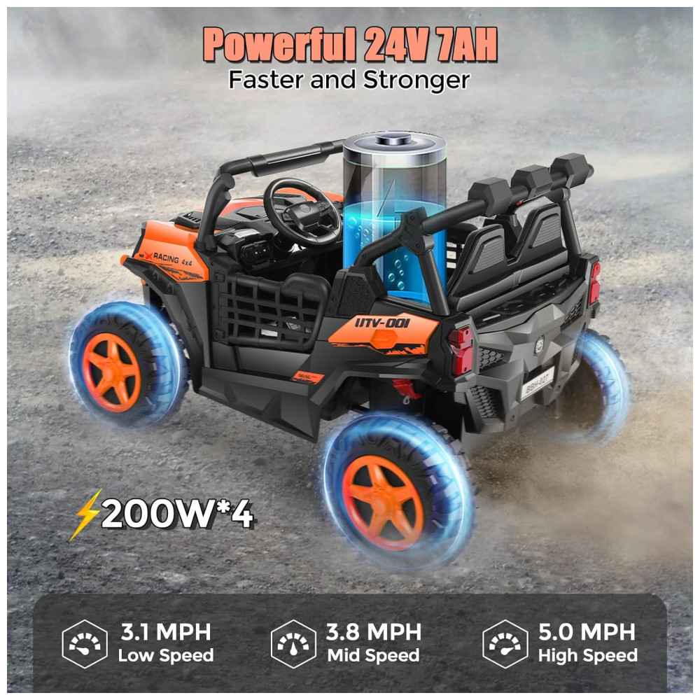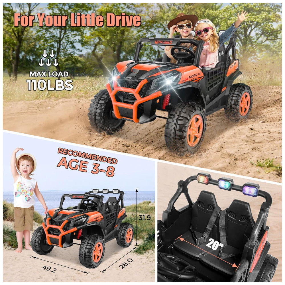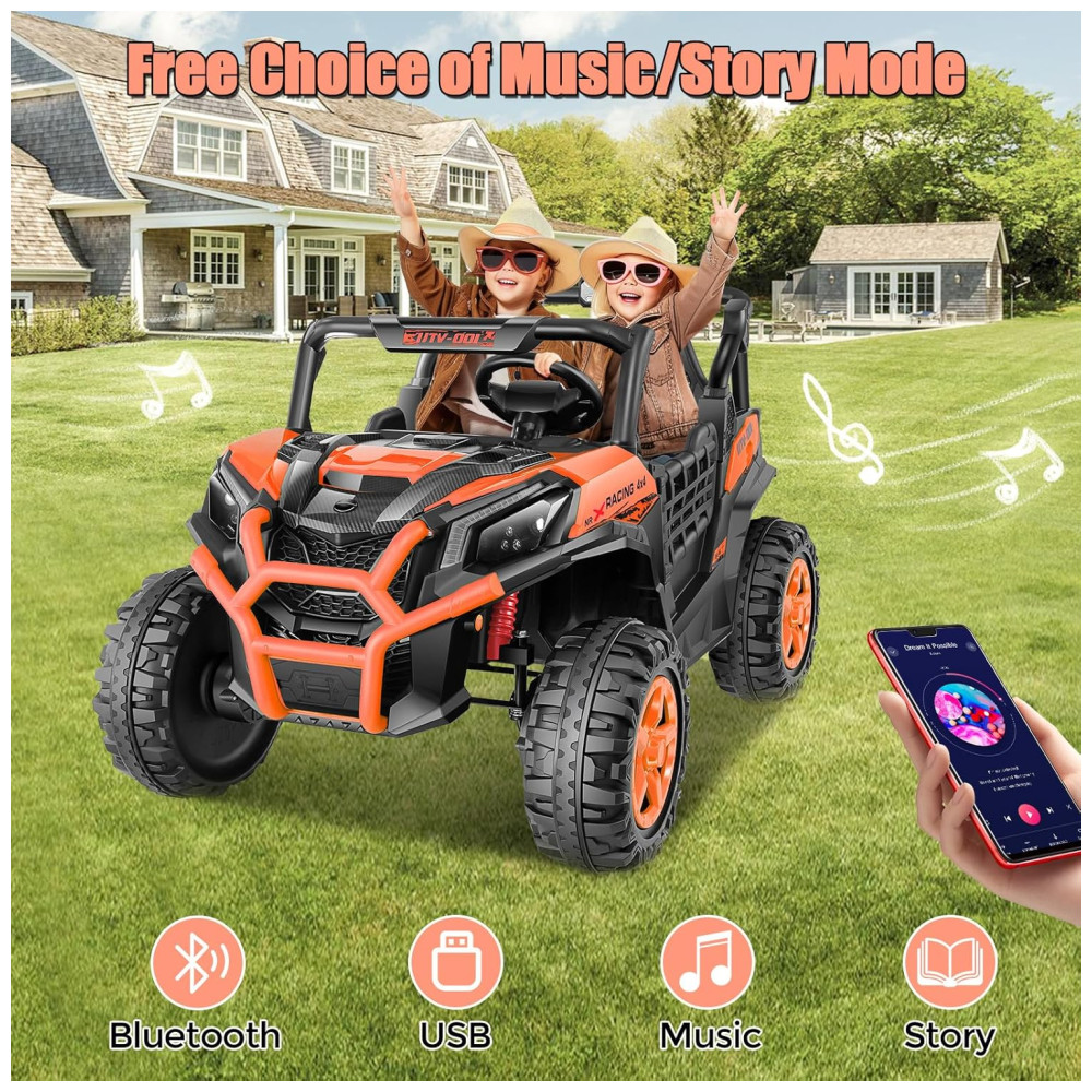 Carro Elétrico Infantil Jeep Off-Road com Controle Remoto 2 Lugares Painel Multifuncional Luzes Dianteiras e Traseiras 24V Hikole Laranja