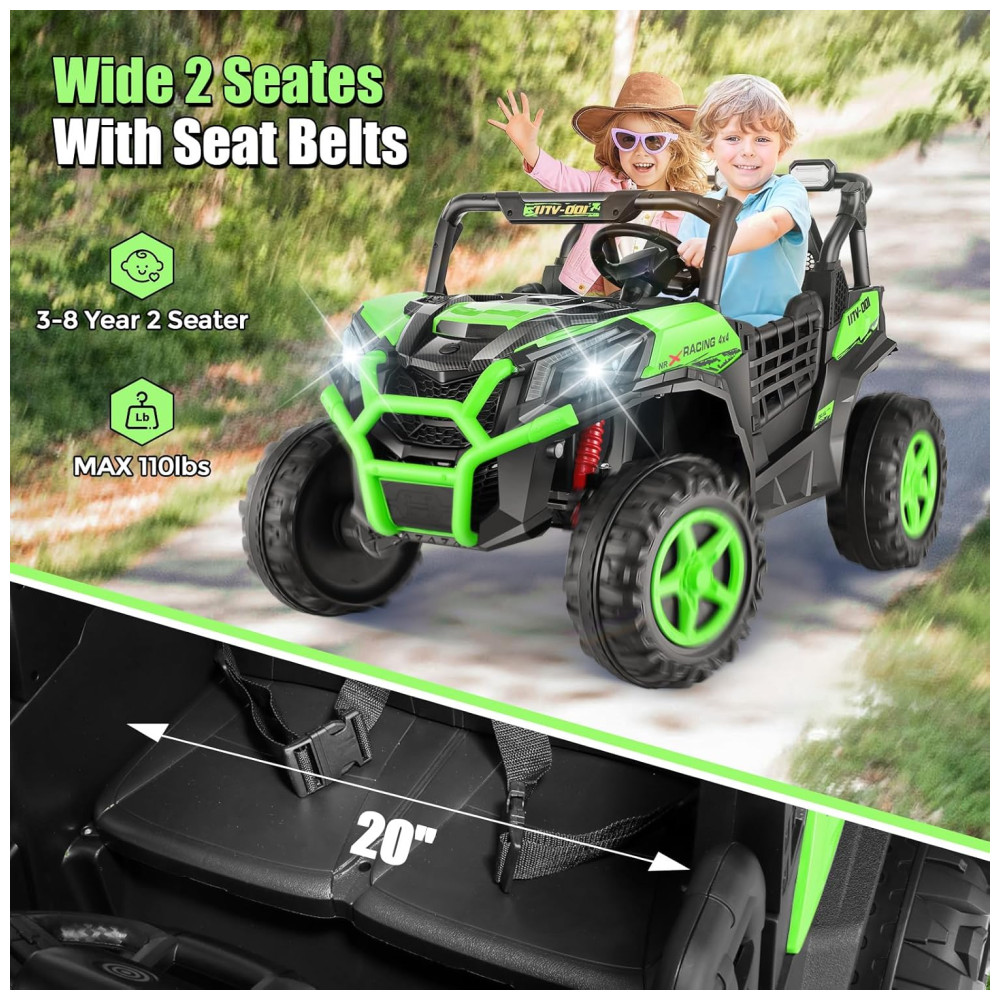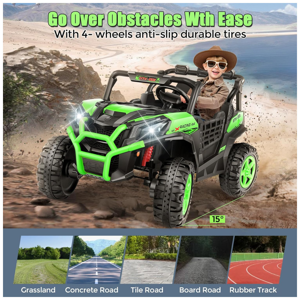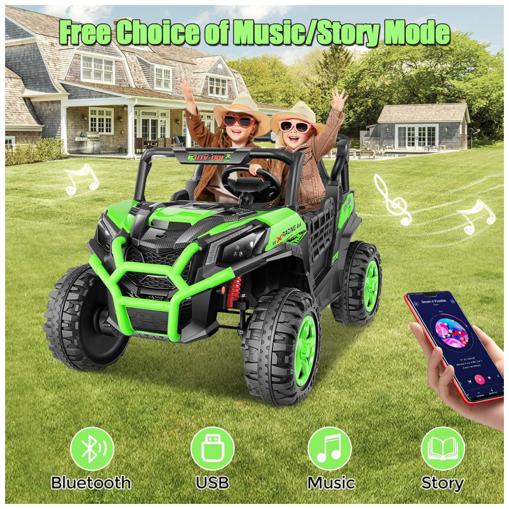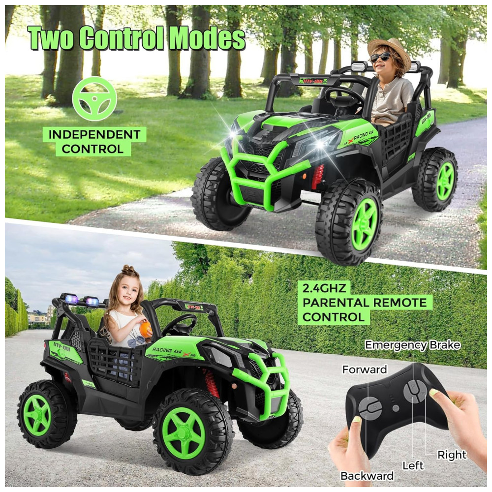 Carro Elétrico Infantil Jeep Off-Road com Controle Remoto 2 Lugares Painel Multifuncional Luzes Dianteiras e Traseiras 24V Hikole Verde